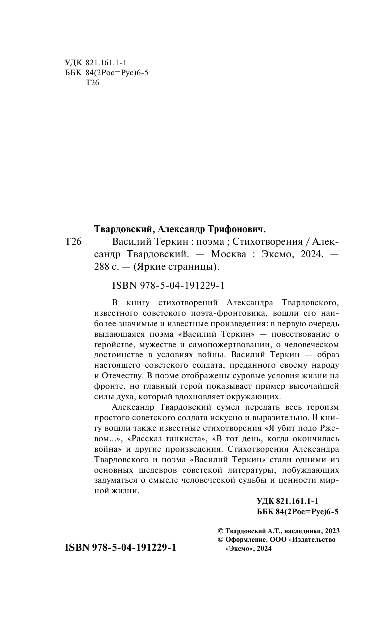 Василий Теркин. Стихотворения (Твардовский Александр Трифонович); ООО "Издательство "Эксмо", 2024