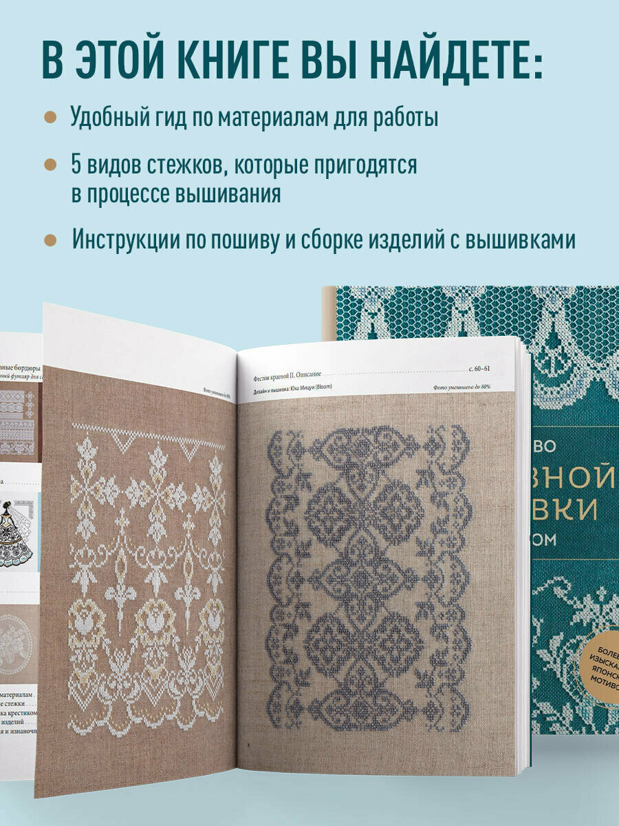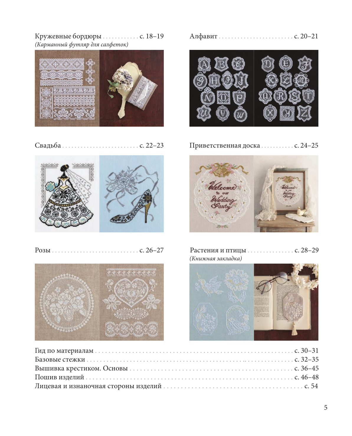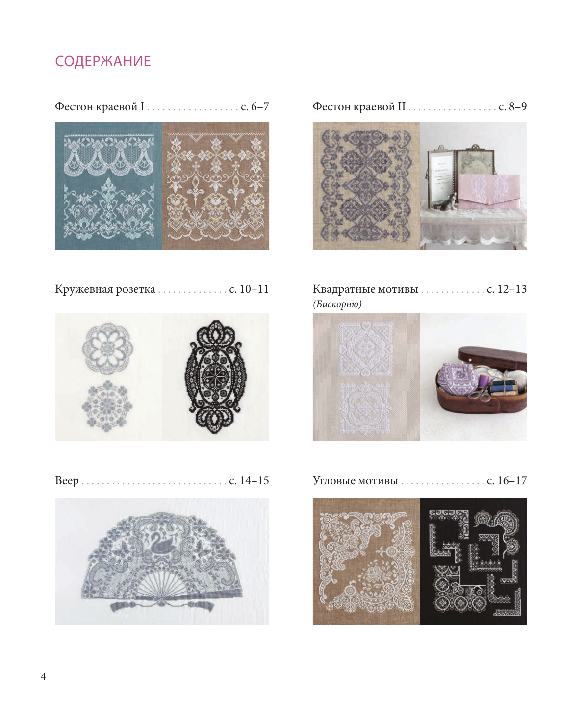 • Более 20 элегантных кружевных мотивов для вышивания крестом.