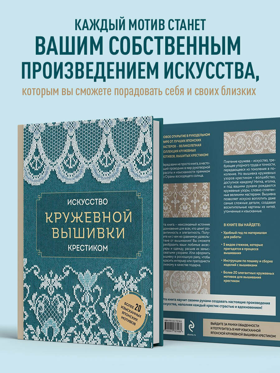 Искусство кружевной вышивки крестиком. Более 20 изысканных японских мотивов (Лубский П.В.); Эксмо, 2024