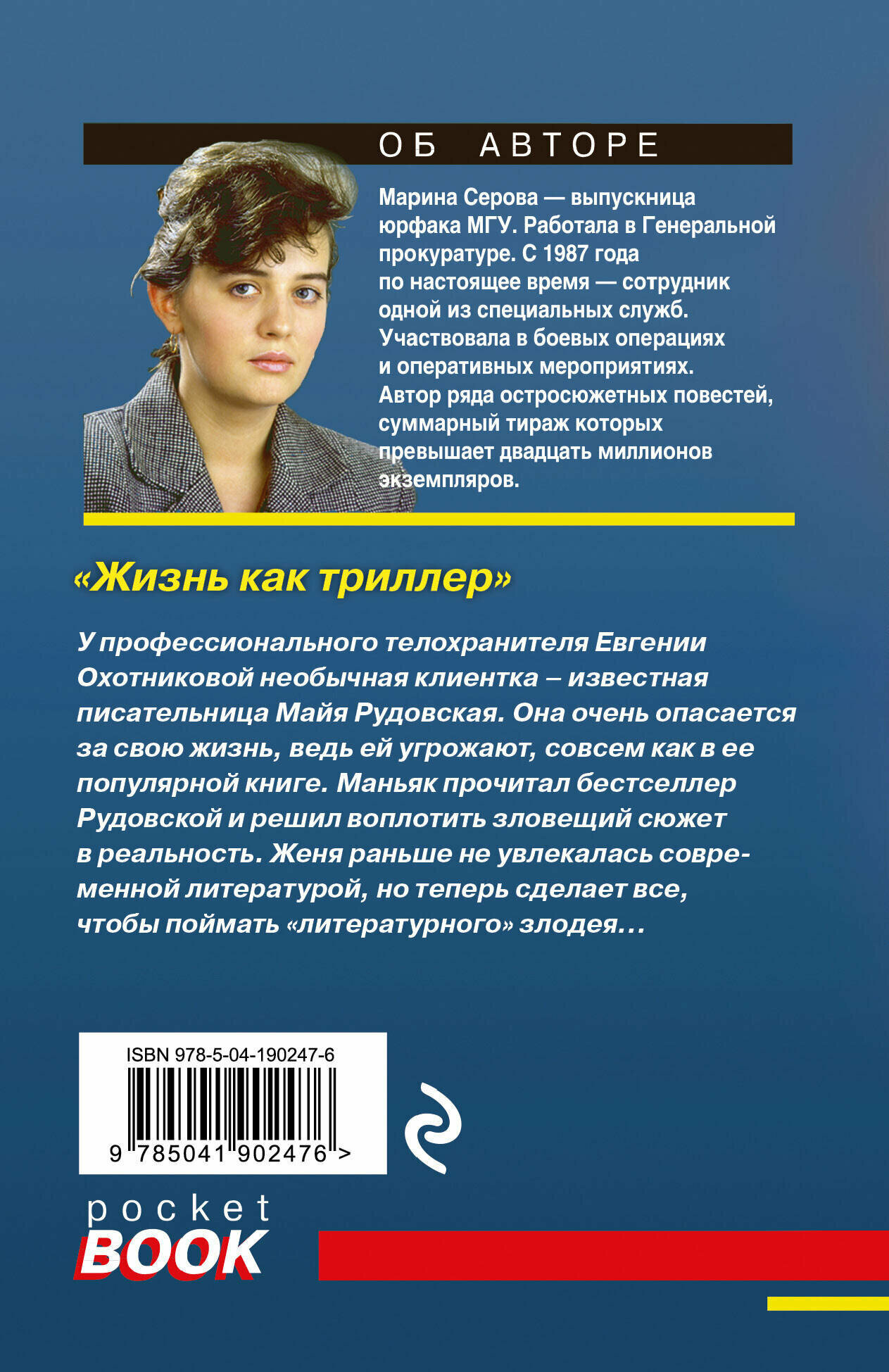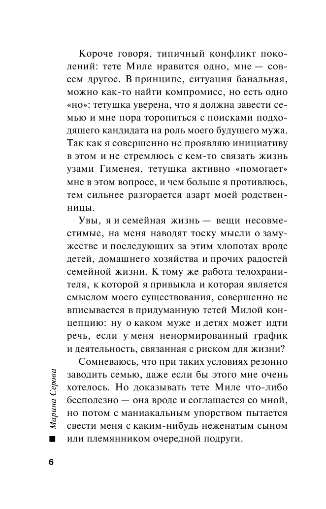 Марина Серова — феномен современного отечественного детективного жанра. Выпускница юрфака МГУ, работала в Генеральной прокуратуре. Участвовала в боевых операциях и оперативных мероприятиях. Автор ряда остросюжетных повестей, суммарный тираж которых превышает двадцать миллионов экземпляров.