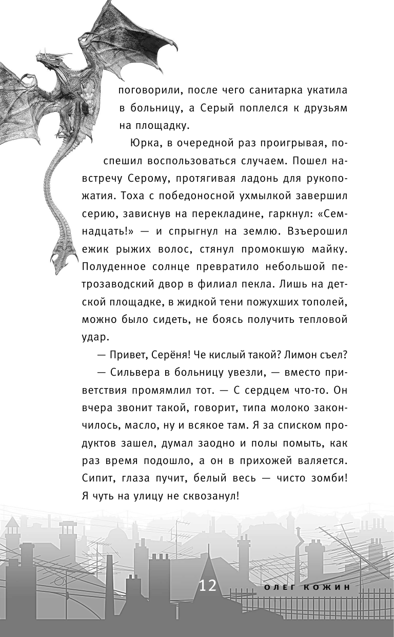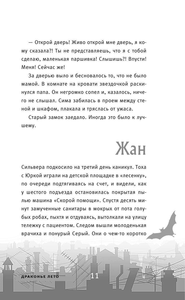 Это лето обещало быть жарким, длинным и скучным. Четверо друзей — Жан, Серый, Тоха и Юрка — собирались провести его в городе. Кататься на великах, играть в компьютерные игры, есть мороженое и… совершенно не готовились ко встрече со смертельной опасностью. Но со двора и из парка исчезли птицы. Из квартир начали пропадать кошки. Большой и грозный бродячий пес обзавёлся страшными ранами на боку… Кажется, где-то рядом притаилось нечто страшное. Оно хочет есть, оно охотится. Готовы или нет — мальчишки попробуют отыскать чудовище.