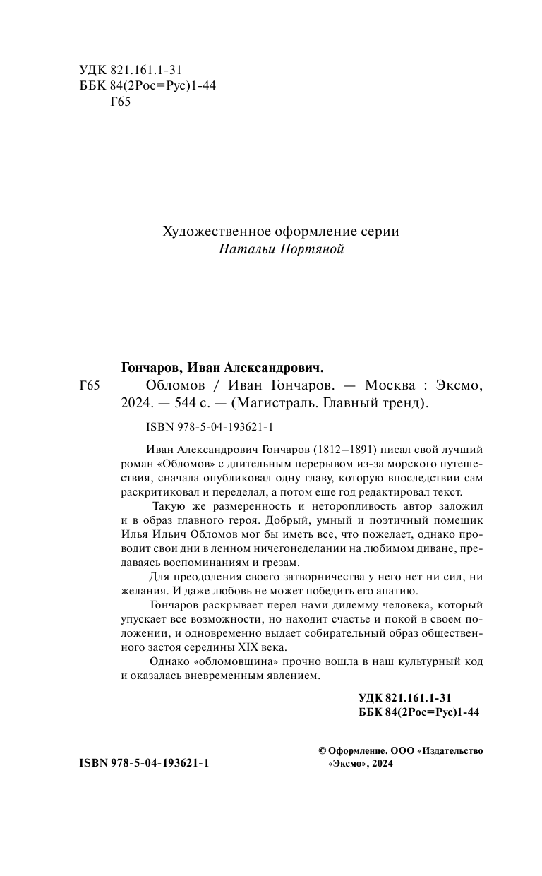 Книга: Обломов (Гончаров Иван Александрович); ООО "Издательство "Эксмо", 2024
