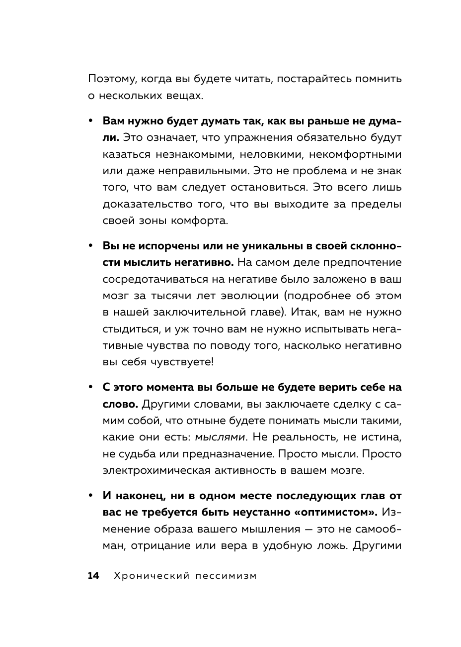 Почему некоторые люди так склонны к негативному мышлению, пессимизму и чувству поражения? Почему некоторые из нас зацикливаются на тревогах и впадают в неуверенность в себе, в то время как другие этого не делают? Почему некоторые люди борются с депрессией и плохим настроением всю свою жизнь, в то время как другие, кажется, черпают из, казалось бы, неисчерпаемого источника оптимизма? Об этом и многом другом вы узнаете из этой книги.