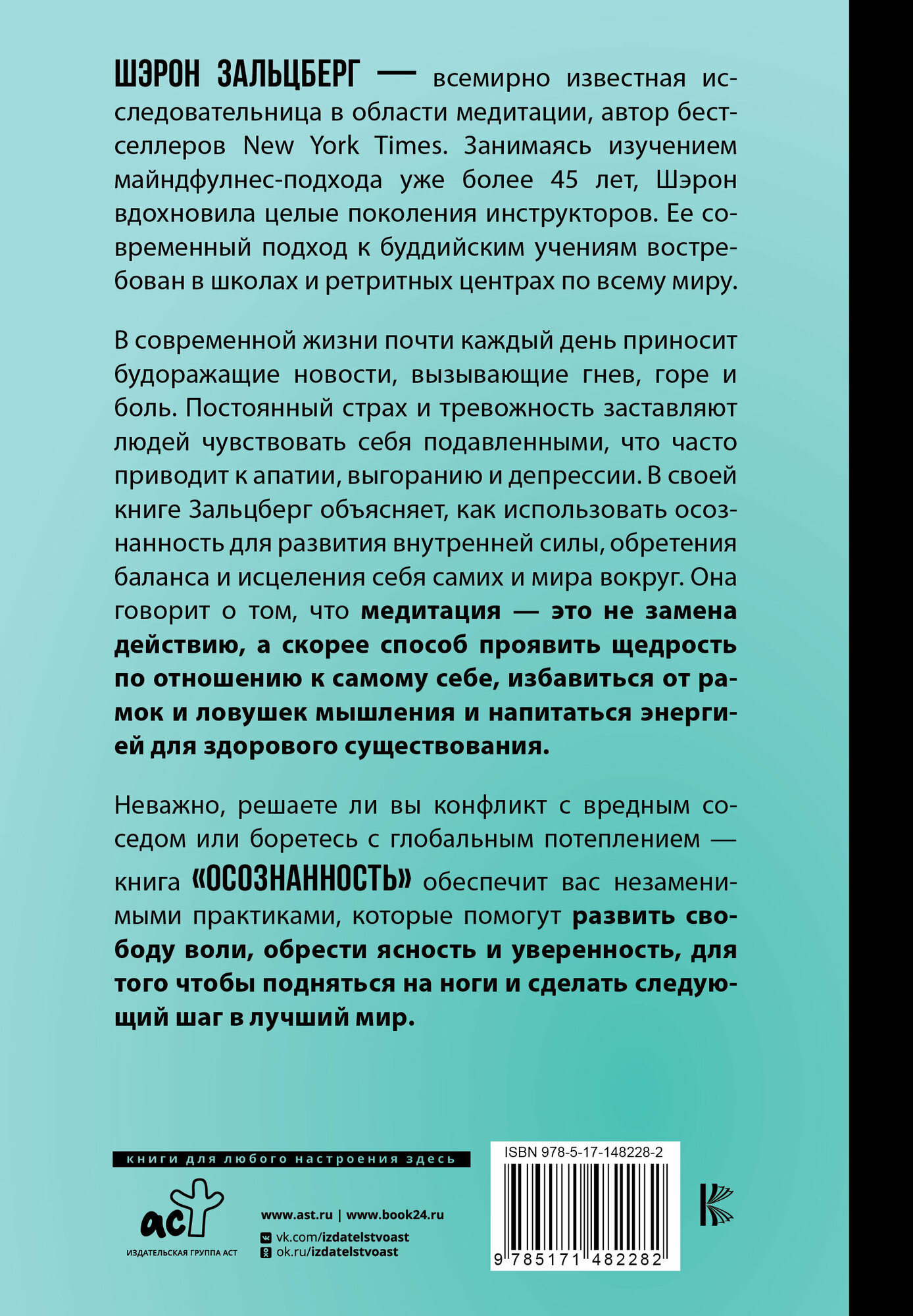 Неважно, решаете ли вы конфликт с вредным соседом или боретесь с глобальным потеплением — книга "Осознанность" обеспечит вас незаменимыми практиками, которые помогут развить свободу воли, обрести ясность и уверенность, для того чтобы подняться на ноги и сделать следующий шаг в лучший мир.