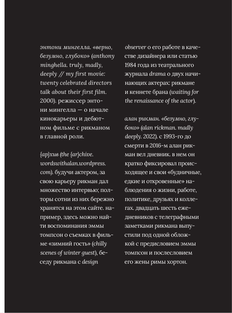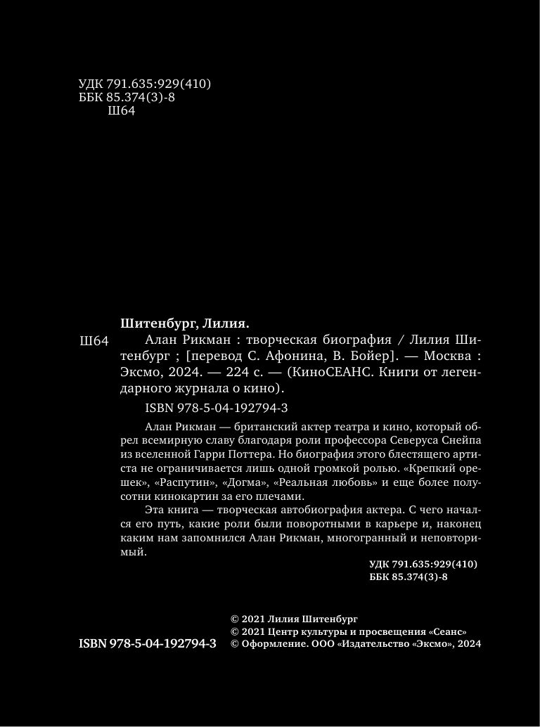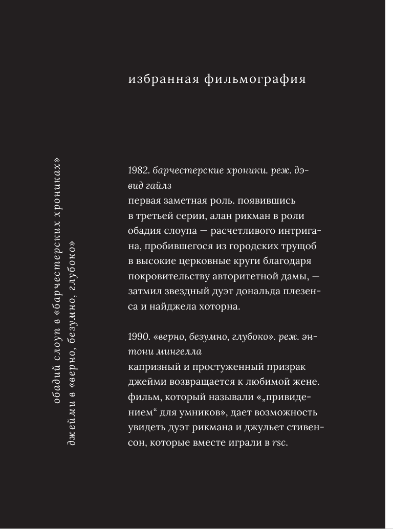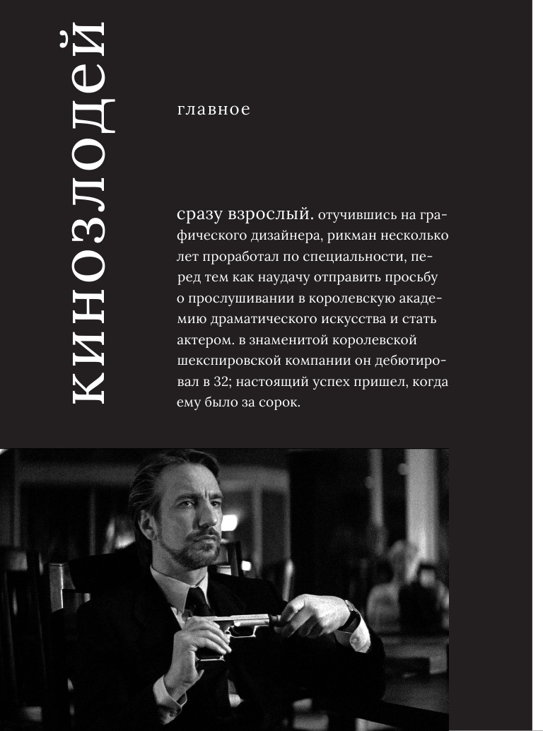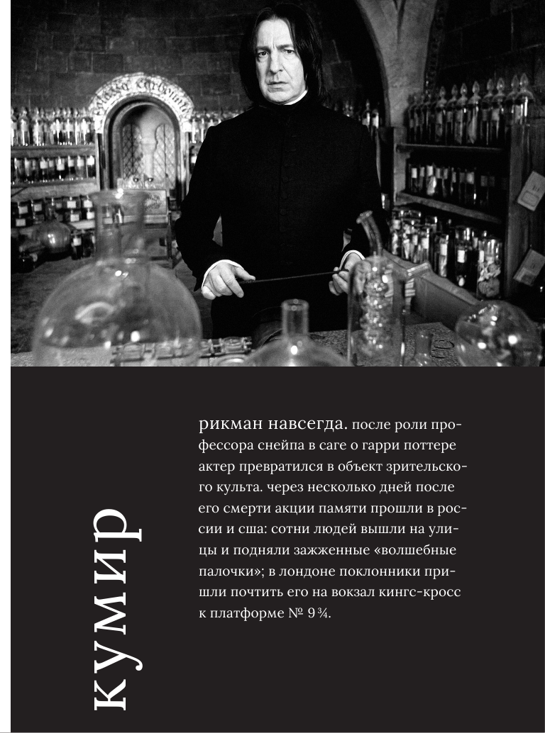 «Алан Рикман. Творческая биография» — это первая книга из новой серии «КИНОсеанс» издательства Бомбора совместно с легендарным журналом о кино «СЕАНС».