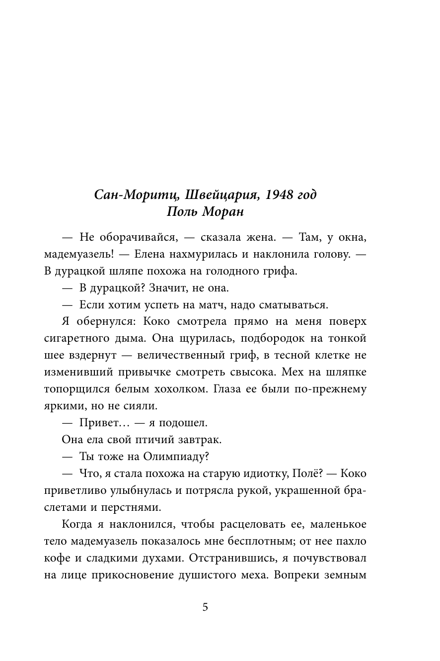 Каким образом парижская модистка стала Великой Мадемуазель? Мало кто знает, что своим успехом она обязана не только собственному таланту и новаторству, и даже не богатым и знатным любовникам. В элитный круг Парижа Шанель попала прежде всего благодаря именитым русским эмигрантам, с которыми ее познакомила близкая подруга Мися Серт. Роман «Русские друзья Шанель» основан на документальных сведениях, в частности на записях друга Коко Шанель Поля Морана, который при ее жизни так и не получил разрешение на их издание. В нем автор — писательница и искусствовед Елена Селестин — в красках передает детали знакомства, дружбы и сотрудничества Шанель с Сергеем Дягилевым, Игорем Стравинским, Леонидом Мясиным, Сергеем Лифарем, великим князем Дмитрием Романовым и княгиней Марией Павловной, Пикассо и его русской женой Ольгой Хохловой. Роман погружает читателя в атмосферу Парижа 1920-х годов, период становления нового искусства, вдохновенного творчества, но в то же время неприкаянности, ревности и нехватки денег, — когда «при дворе Дягилева» не прекращалась напряженная работа и кипели страсти, в том числе при участии Габриэль Шанель.