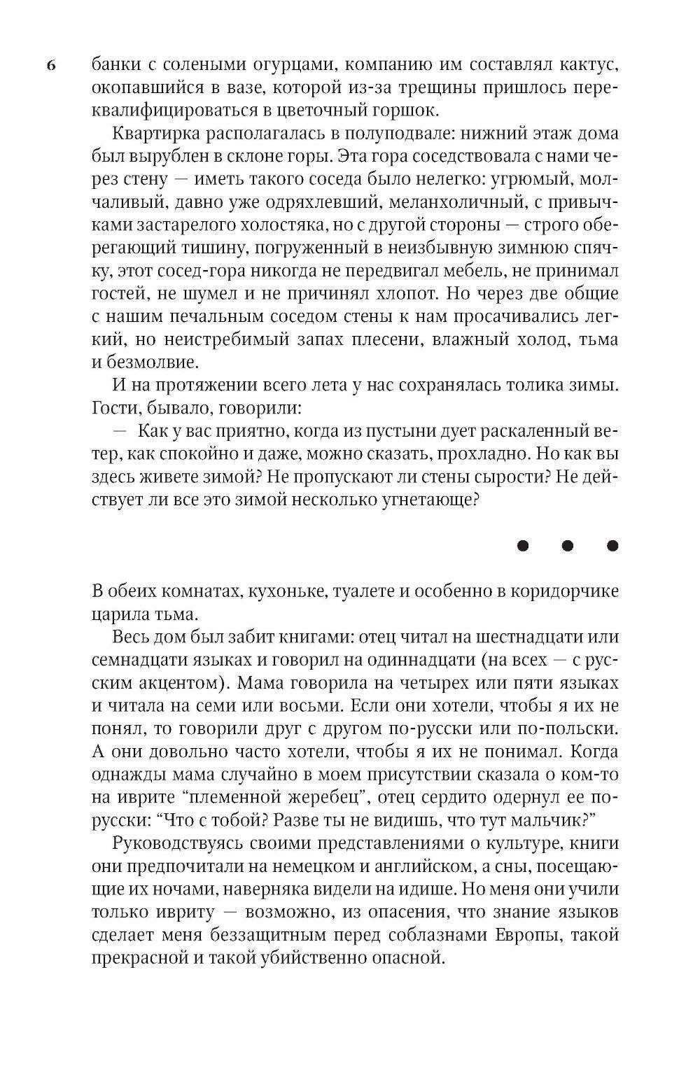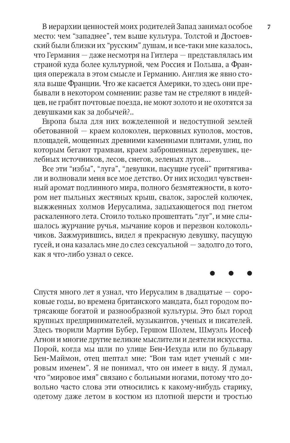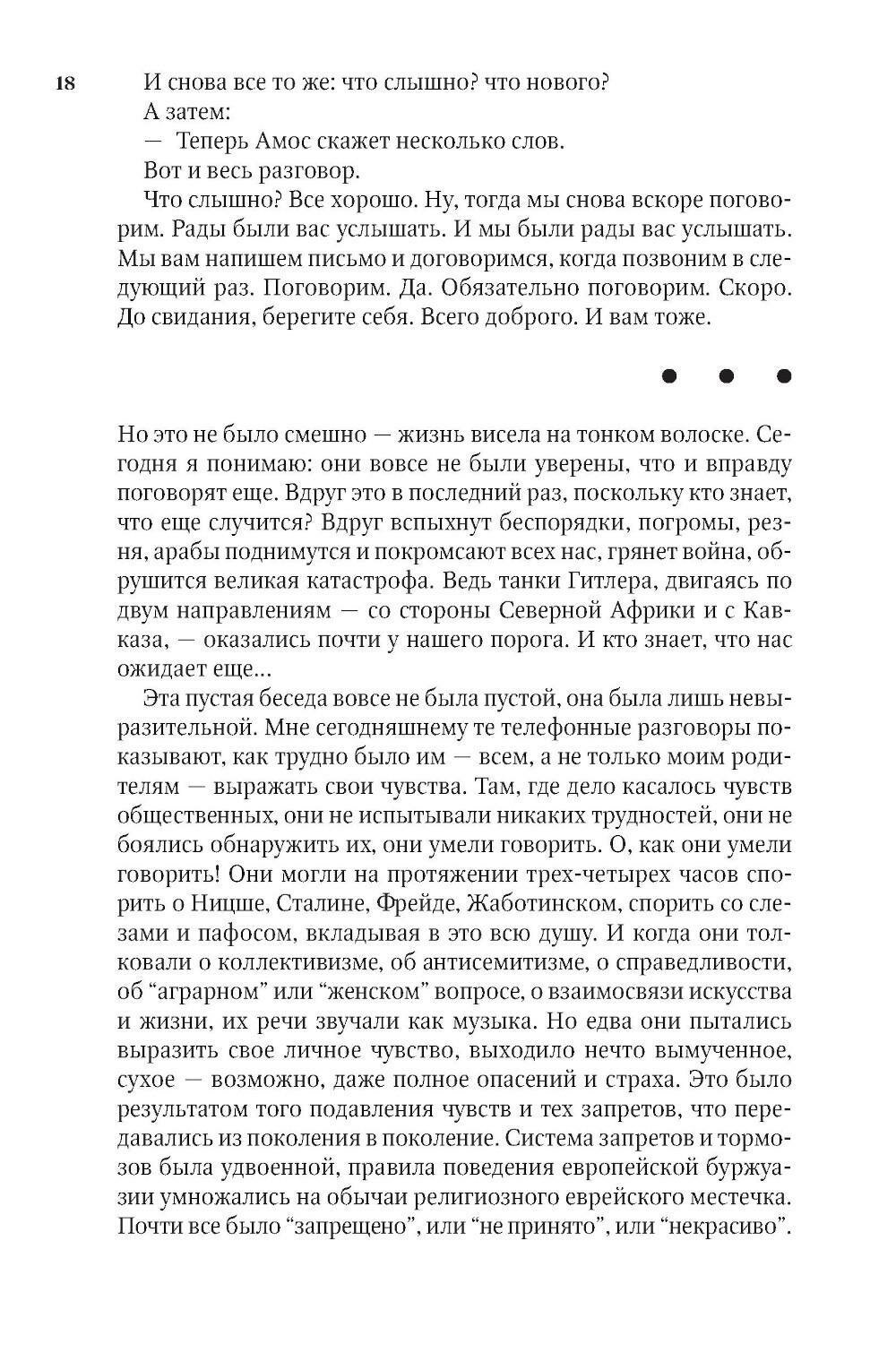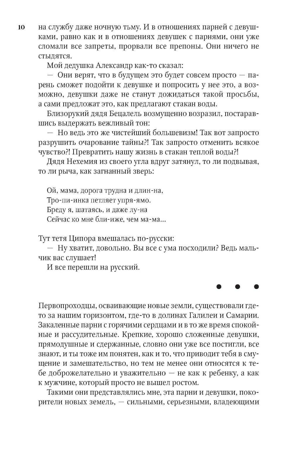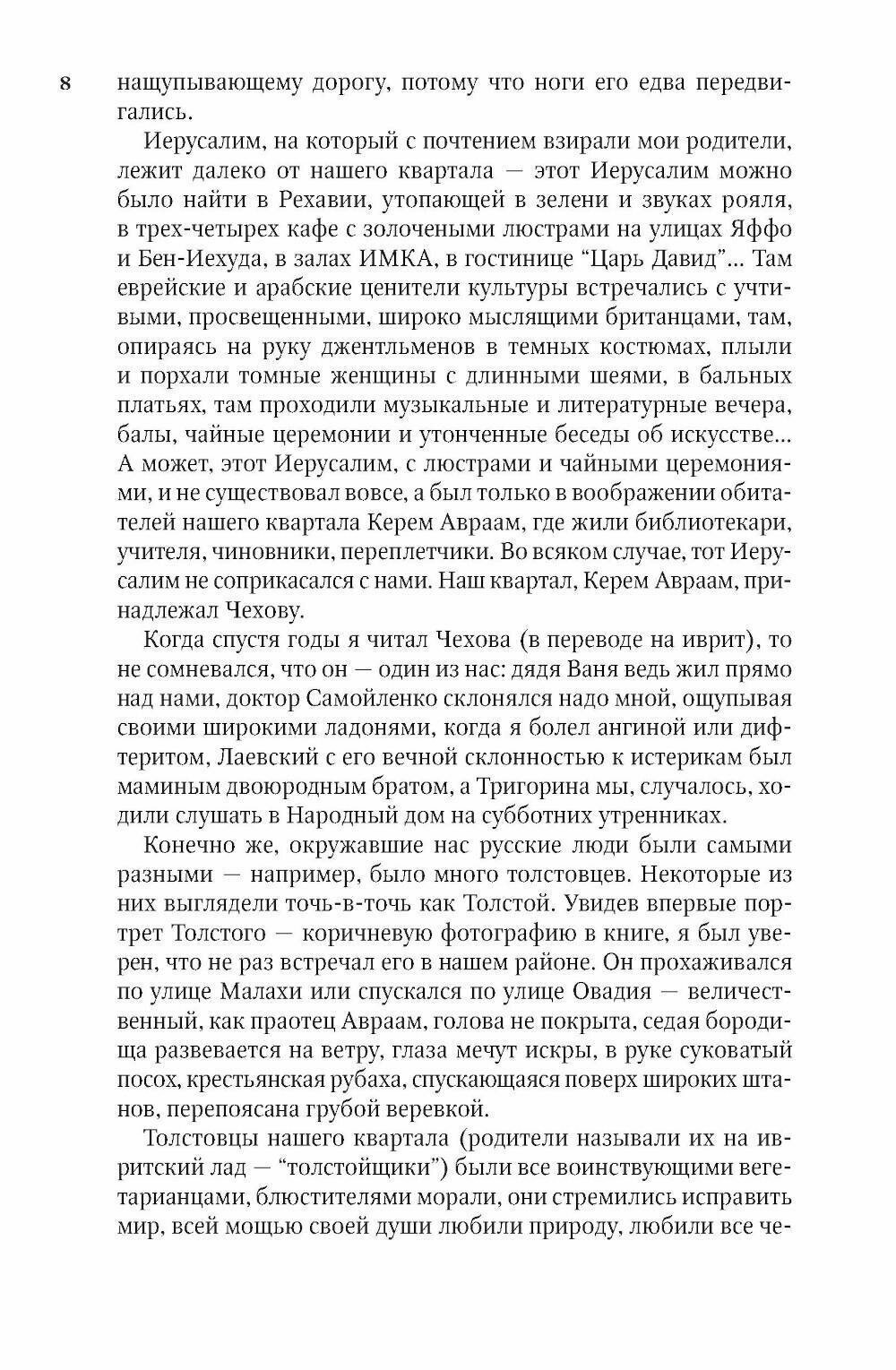 Роман-мемуар, самая личная книга классика израильской литературы. Семейная сага и автопортрет писателя, который был свидетелем рождения нации и бурной эпохи послевоенного времени. Это история взросления мальчика, который вырос в истерзанном войной Иерусалиме, в маленькой квартирке, забитой книгами на двенадцати языках, и которого окружали двенадцать родственников. Это история подростка, жизнь которого навсегда изменилась после смерти матери. Это история молодого человека, который сумел вырваться из удушливого мира семьи, влиться в неведомый новый мир, изменить свое имя. Это история известного писателя, который становится активным участником политической жизни своей страны.