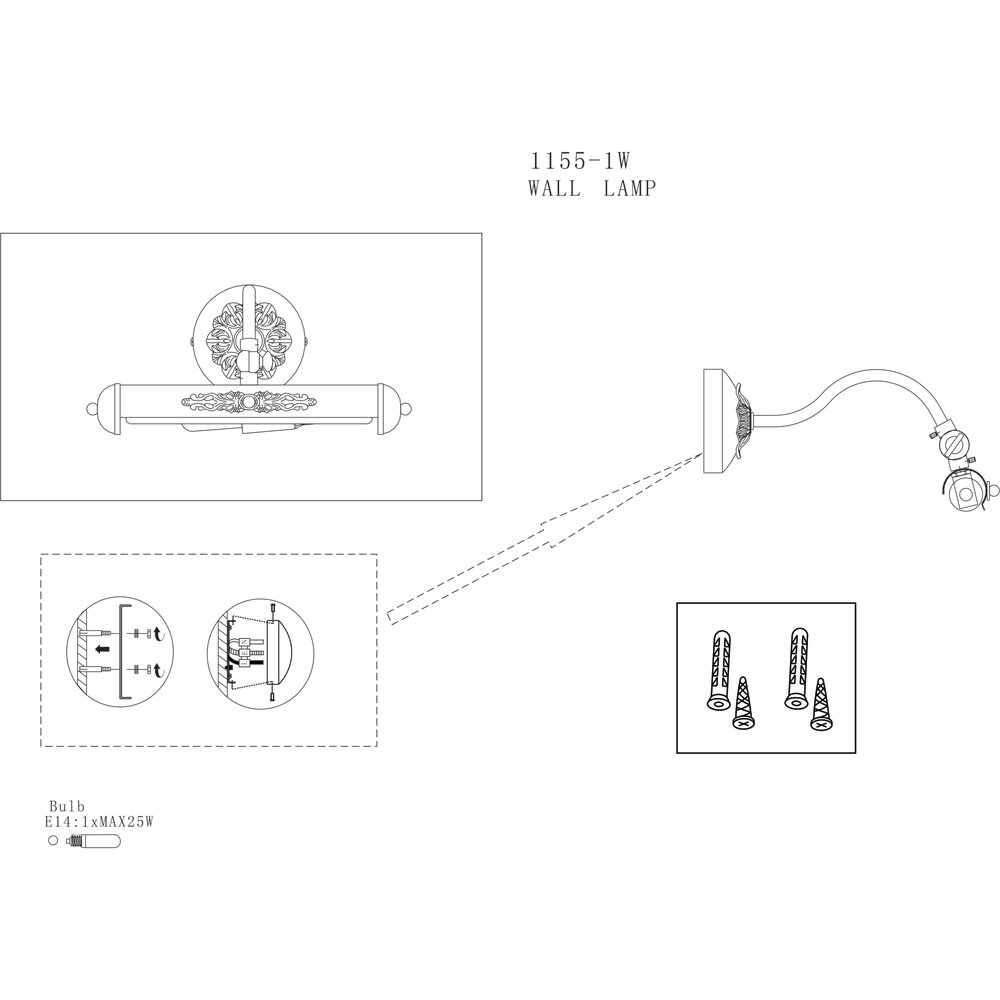| Максимальная мощность ламп, W | 25 |