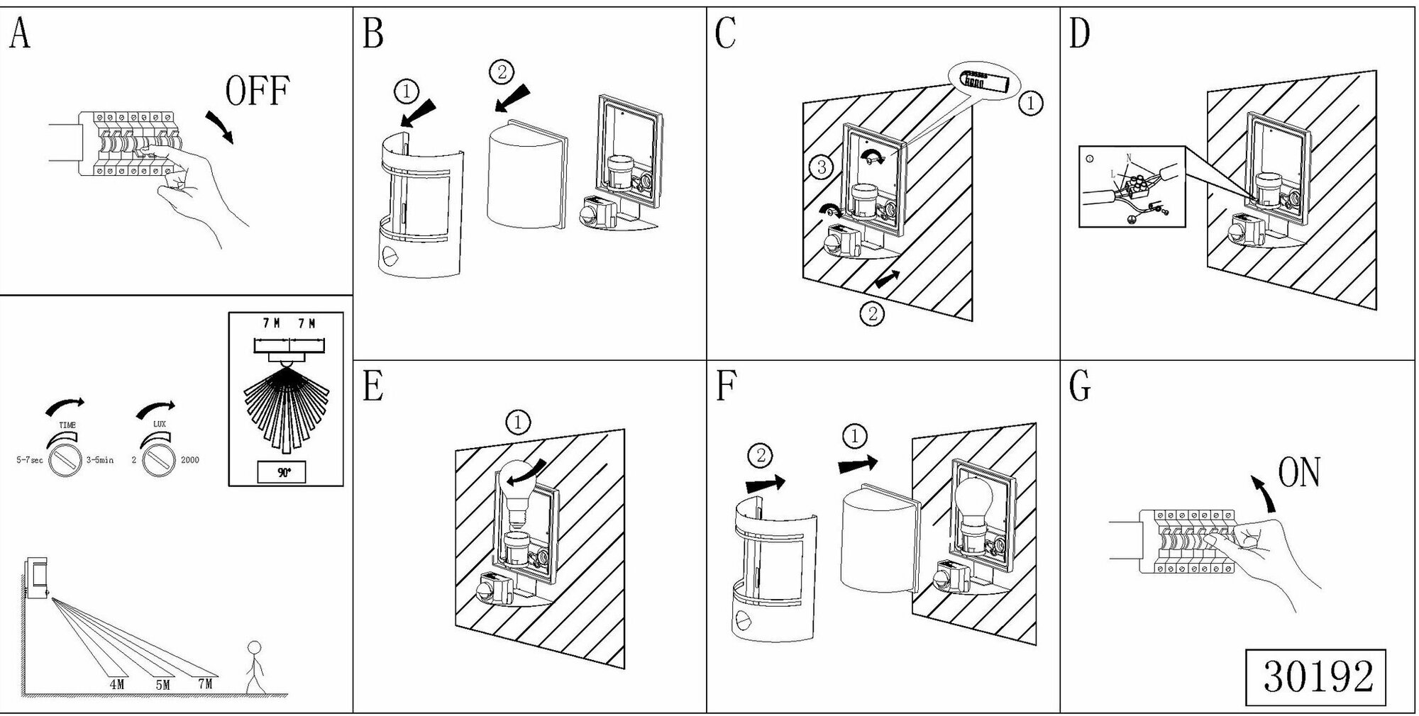 | Дополнительные характеристики | угол восприятия датчика - 90 градусов, расстояние восприятия датчика - 7 м, время свечения - 10-240 с |