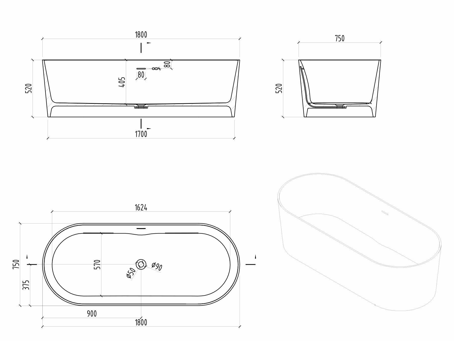 Сервис сравнения цен СкидкаГИД предлагает сравнить цены на товар «Ванна из искусственного камня Abber Stein 180x75 AS9614 без гидромассажа»