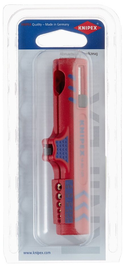 Универсальный инструмент для удаления оболочки KNIPEX подходит ко всем широко распространенным круглым кабелям диаметром от 8 до 13 мм. Предусмотрены специальные приспособления для снятия изоляции с проводов сечением от 0.2 до 4.0 кв.мм, а также выдвижной нож. Корпус, усиленный стекловолокном, обеспечивает надежную защиту от механических повреждений, а благодаря крепежному зажиму инструмент удобно и безопасно хранить и транспортировать.