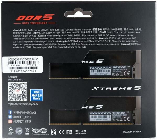 Модуль памяти DDR5 48GB (2*24GB) Patriot Viper XTREME PC5-60800 7600Mhz CL36 1.45V радиатор (retail) PVX548G76C36K