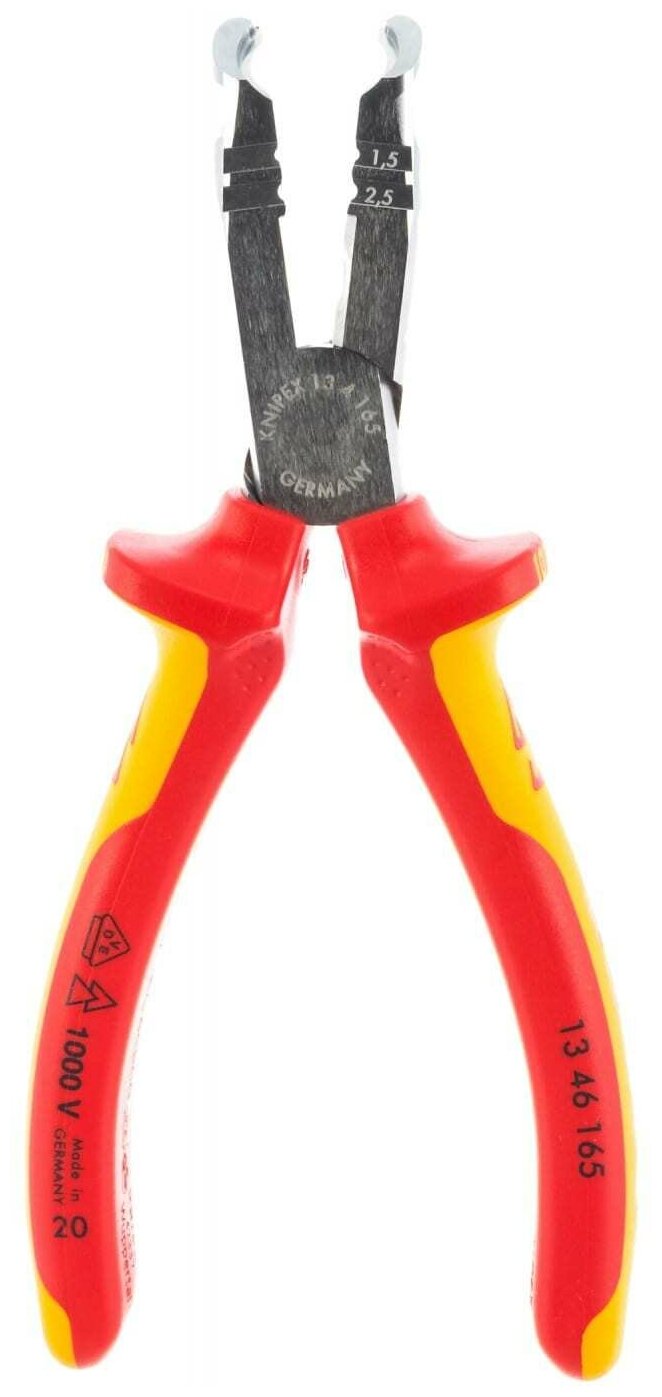 13 46 165 Клещи-стрипперы для удаления оболочки Многофункиональность: один инструмент длярезания и удаления оболочки и изоляции. для быстрого удаления оболочки и изоляции с наиболее часто применяемых круглых проводов и проводов для сырых помещений (например, NYM). Облегчённый доступ прежде всего к подрозетникам, благодаря тонкой форме головки и оптимальному наклону лезвия для удаления оболочки с кабеля. легкое и чистое удаление оболочки благодаря круглому лезвию с ограничителем глубины. универсальное применение: прецизионные гнёзда для удаления изоляции с проводов 0,75 - 1,5 и 2,5 мм². с боковыми кусачками для резания проводов, проволоки, мелких винтов и гвоздей. Все лезвия дополнительно закалены токами высокой частоты дотвёрдости 61 HRC: максимальная износостойкость. вес на 30 % меньше, чем вес аналогичных моделей. - Параметры резания /проволока средней твёрдости (диаметр): Ø 3,2mm - Параметры резания / твёрдая проволока (диаметр): Ø 2,2mm - Параметры удаления оболочки (диаметр): 8 –