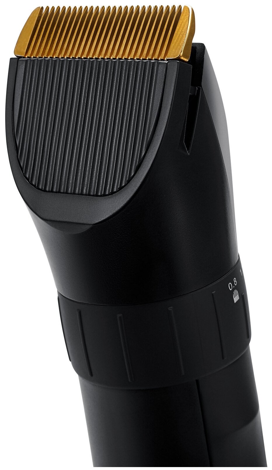 Титаново-керамические лезвия. До 180 мин работы от аккумулятора. Скорость мотора: 6400 оборотов в минуту. Машинка для стрижки волос и бороды. Работа от аккумулятора и от сети. Лезвия можно промывать под водой. 2,5 часа для полного заряда. Дисплей для определения уровня заряда. Регулировка длины подвижным роликом: 0,8-2 мм. Регулировка длины 5 насадок-гребней: 3,6,9,12,16 мм. Подставка для хранения и подзарядки. Литиевая батарея. Сетевой шнур 1,8 м. Масло, щеточка для чистки.