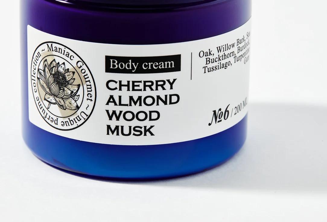 MANIAC GOURMET Крем парфюмированный для тела №6 Вишня Миндаль Древесная кора Мускус 200 мл (ПЛ300/6)