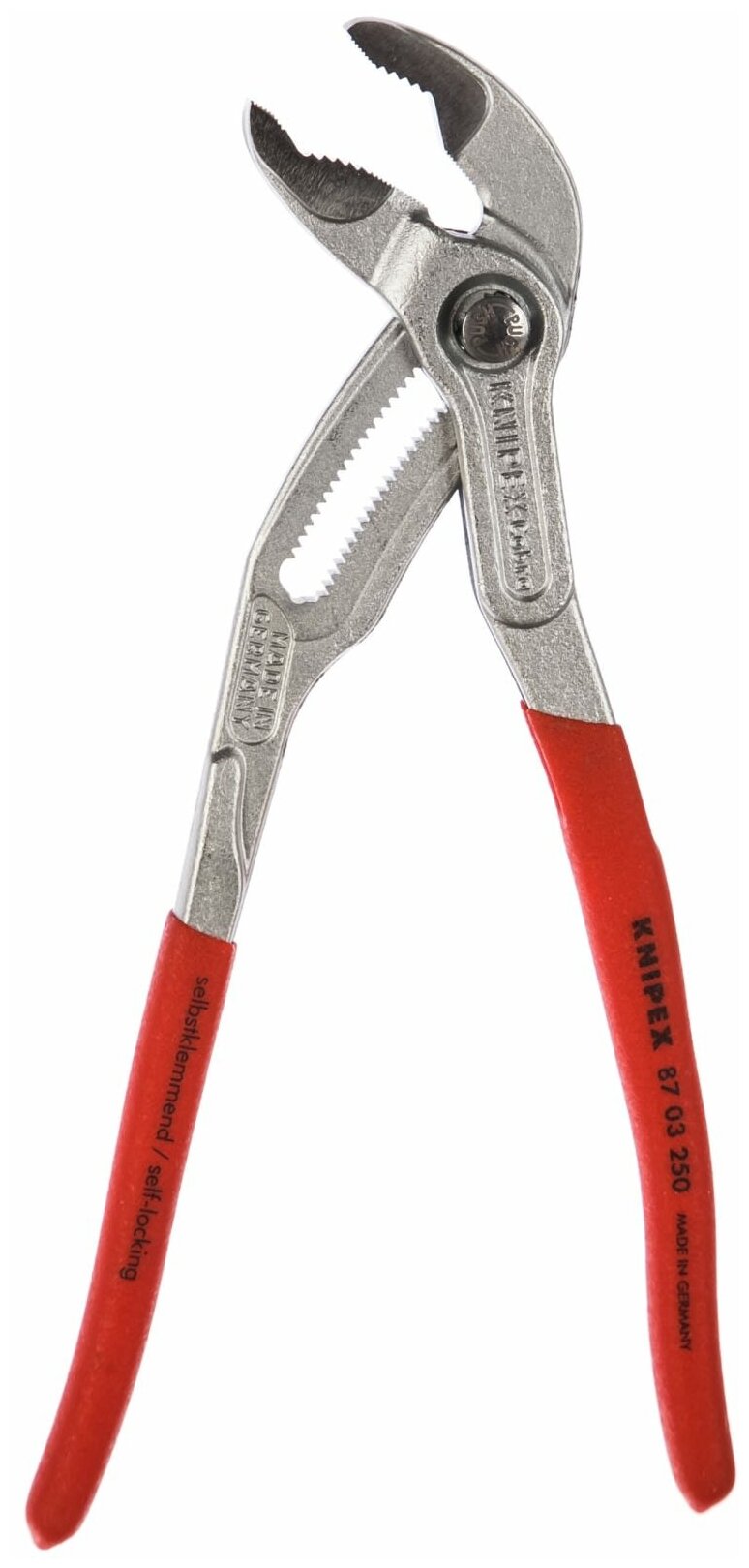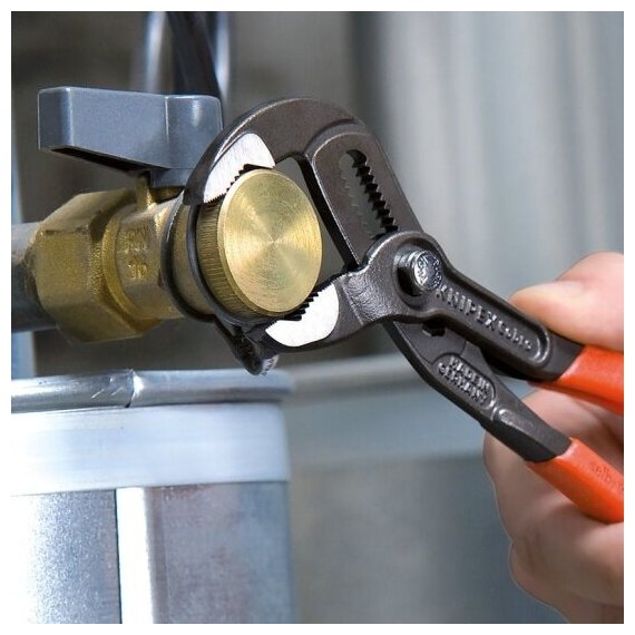Регулировка прямо на детали простым нажатием кнопки! Настройка непосредственно на детали при одновременно удобном расположении ручек. Функция смыкания губок, которая облегчает работу в узких и труднодоступных местах. Захватные губки со специально закаленными зубцами твердостью примерно 61 HRC: прослужат долго.