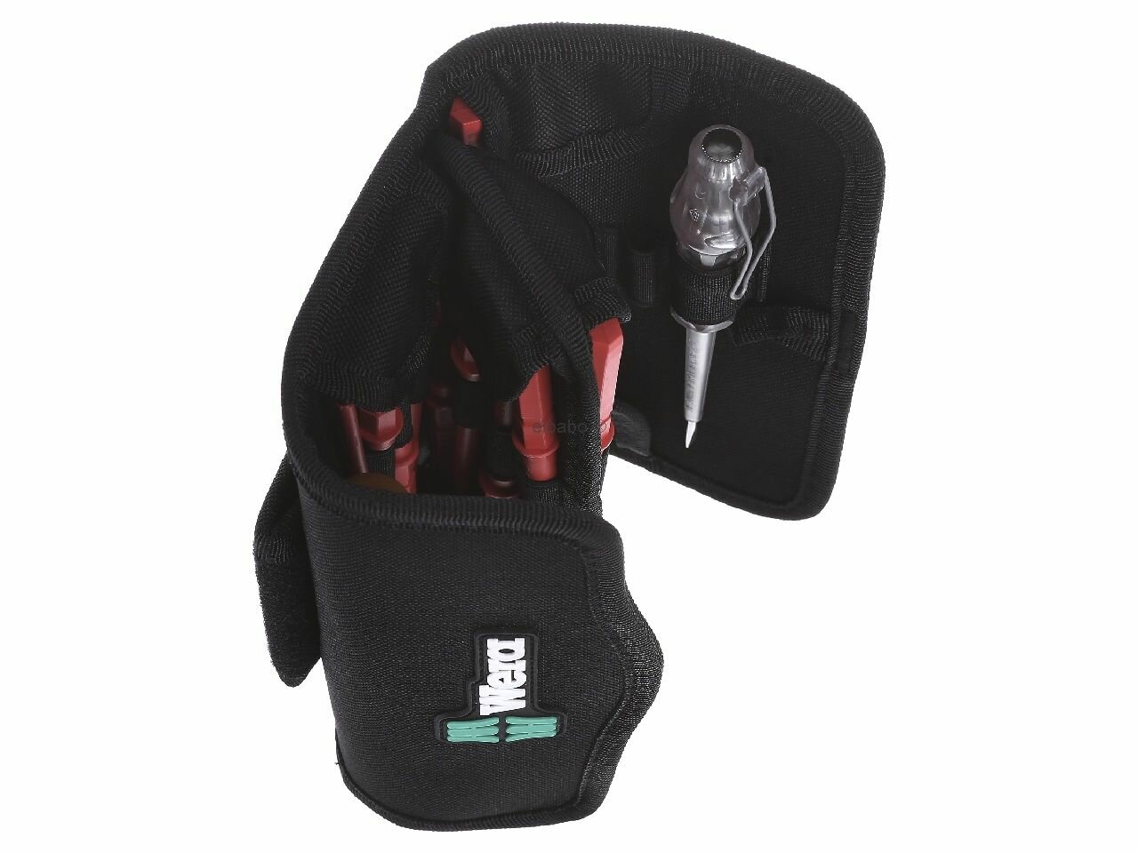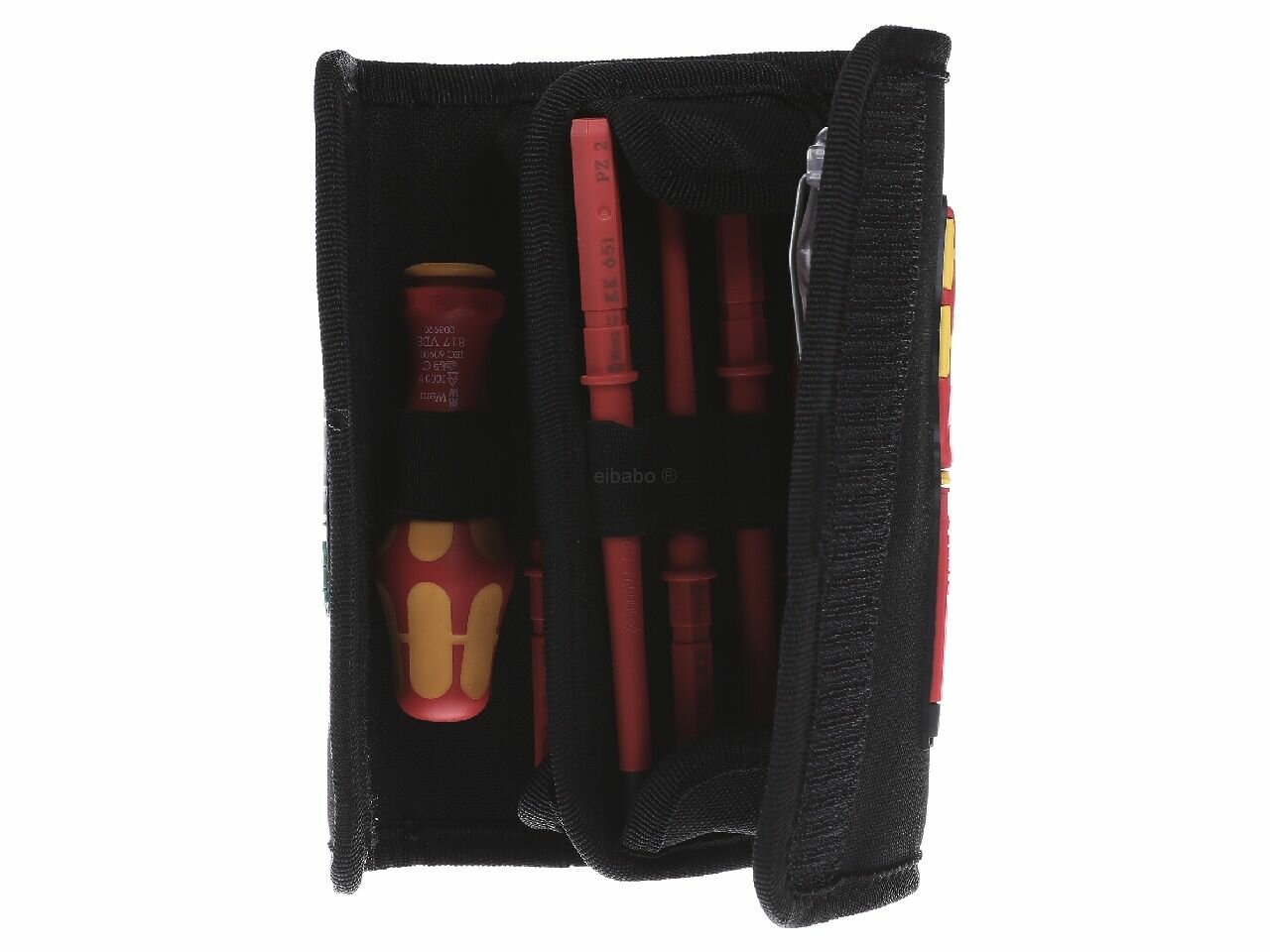 14 сменных отверток VDE с ручкой-держателем 817 VDE Kraftform и индикатором напряжения в прочной поясной сумке. Поштучная проверка в водяной бане под напряжением 10000 В для безопасной работы на оборудовании с максимально допустимым напряжением 1000 В.