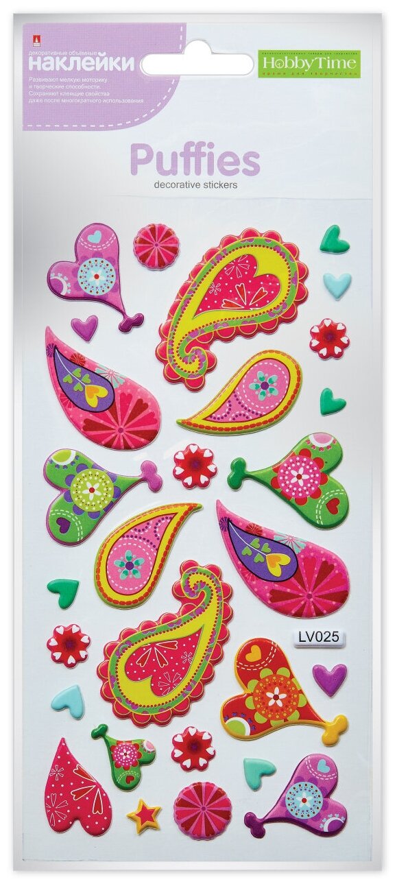 Декоративные объемные наклейки развивают мелкую моторику и творческие способности. Сохраняют клеящие свойства даже после многократного использования.
