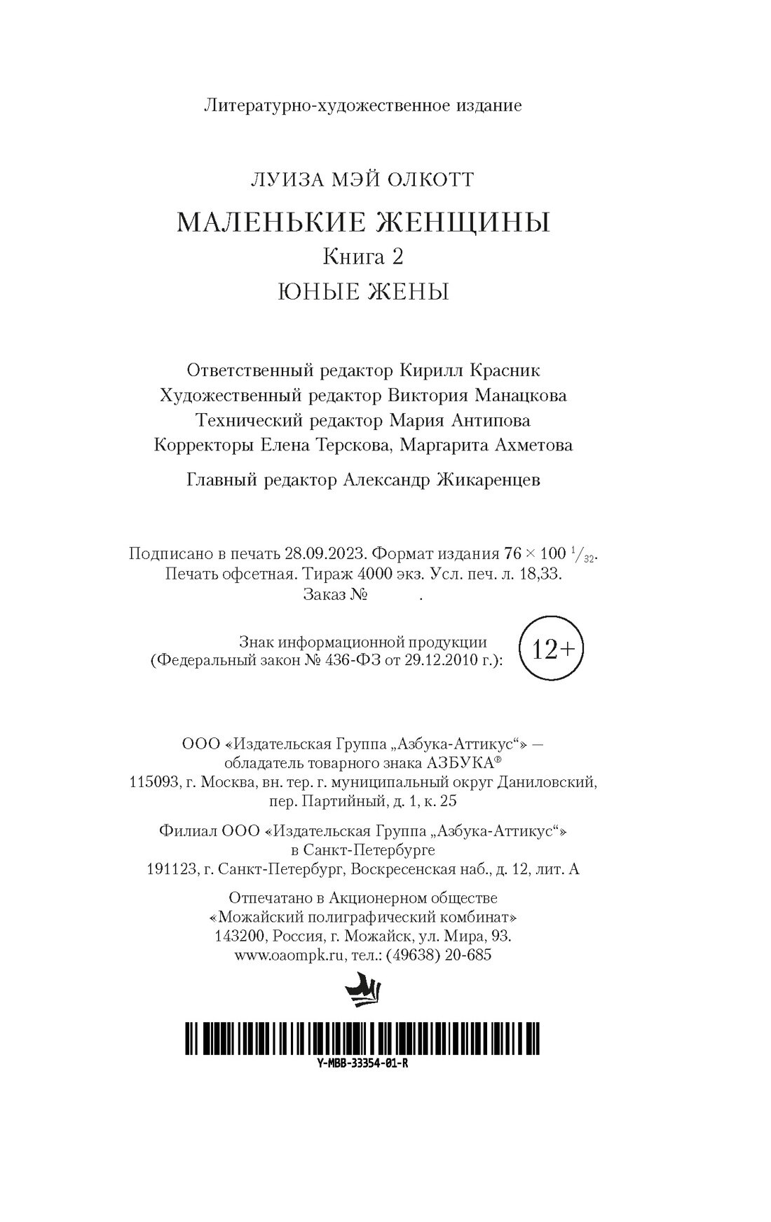 Маленькие женщины. Книга 2. Юные жены (Луиза Мэй Олкотт); Азбука, 2023