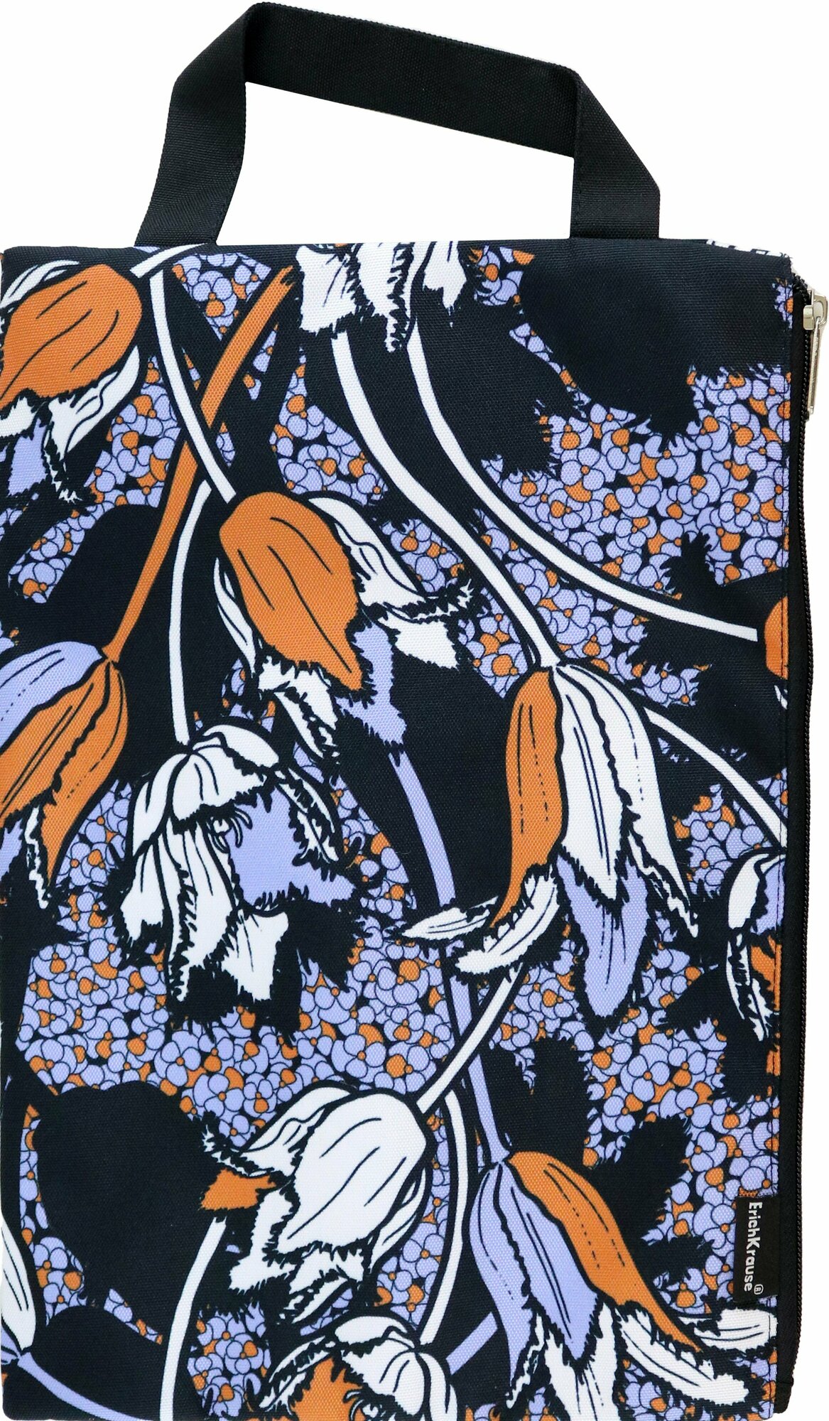 Папка текстильная на молнии Tulips вертикальная с ручкой A4 Erich Krause