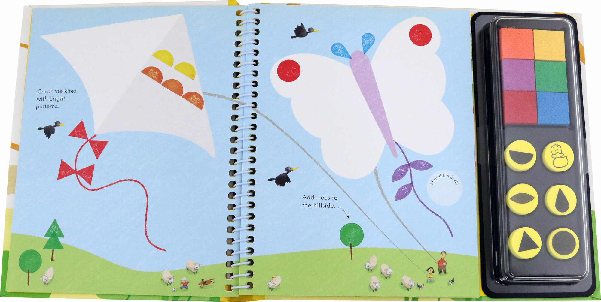 Join Poppy and Sam for lots of rubber stamping fun in this entertaining activity book, with its own brightly coloured inkpad of seven colours. Decorate the scenes with hens, sunflowers, goats, pumpkins and much more. There are simple instructions showing how to fingerprint each scene and the book has a spiral binding so that it lies flat.