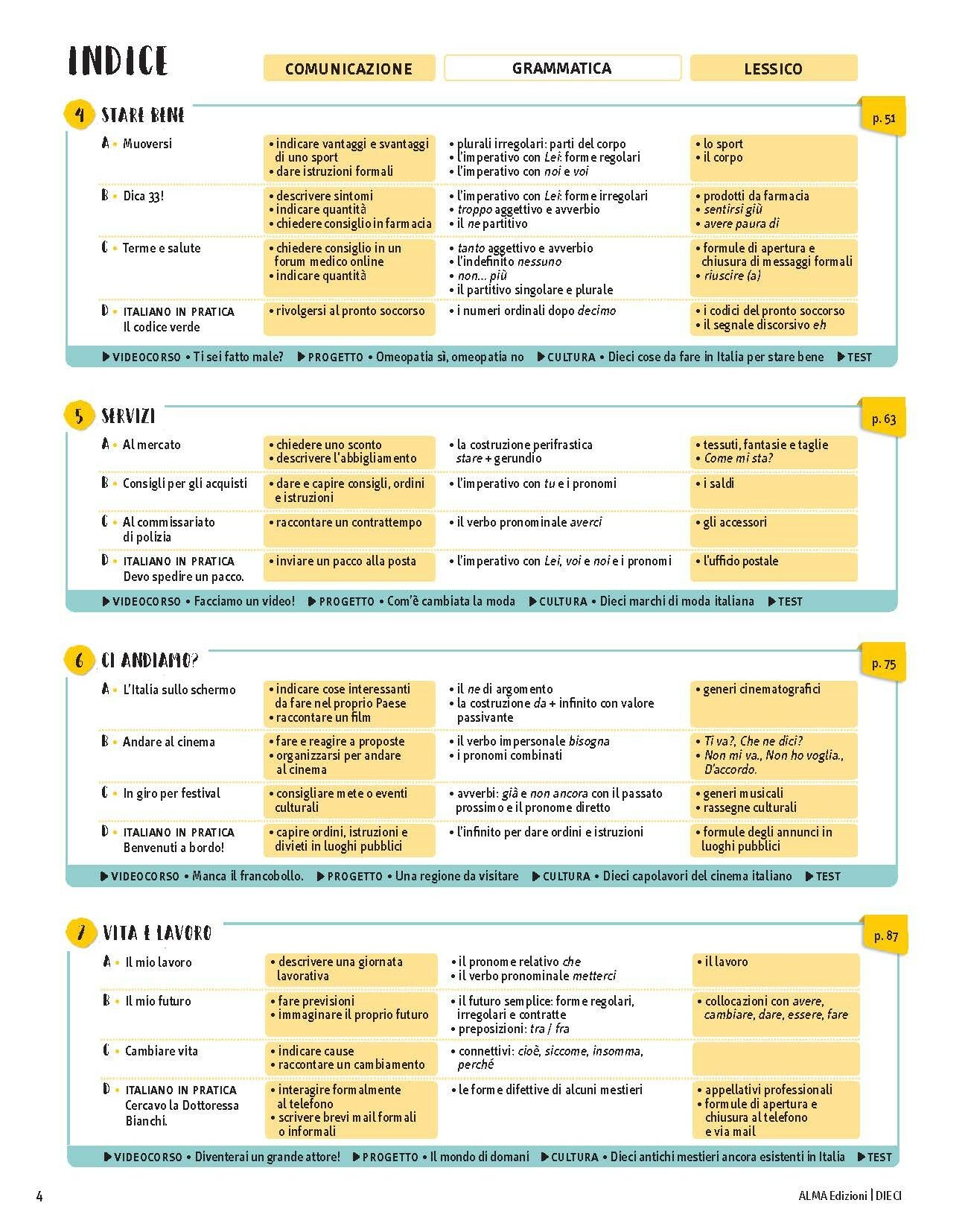 DIECI e un nuovo corso di lingua italiana per stranieri diviso in 4 livelli (A1, A2, B1, B2).