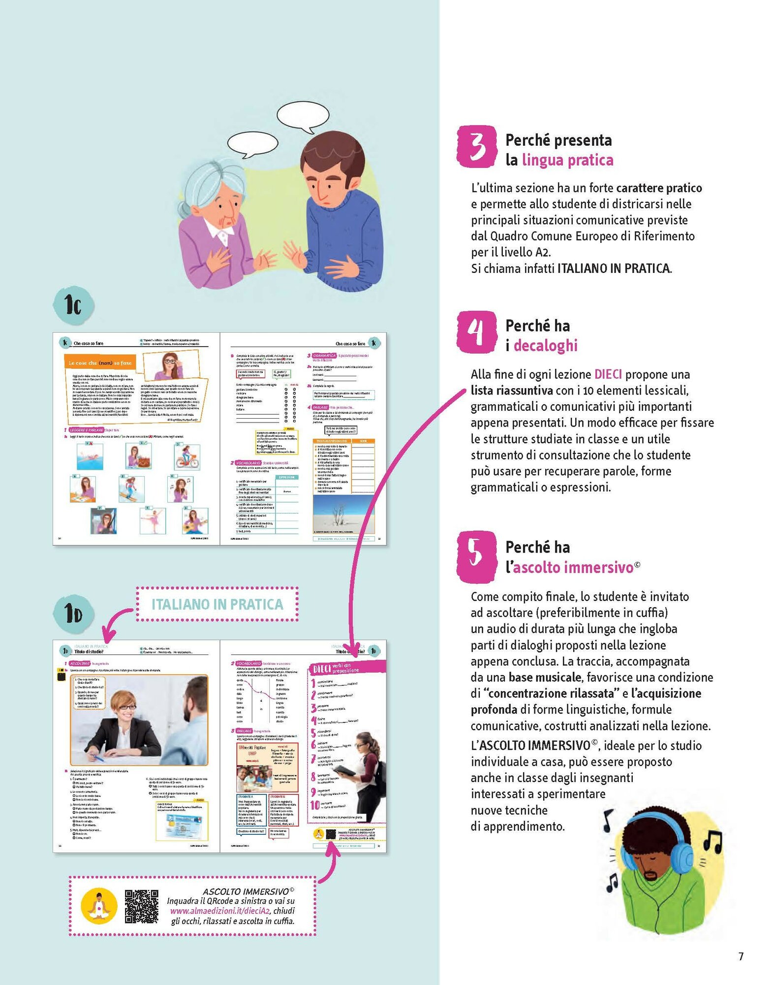 Include anche un VIDEOCORSO in 10 episodi, una GRAMMATICA, un VOCABOLARIO ILLUSTRATO, un ESERCIZIARIO e gli episodi a fumetti di "VIVERE E PENSARE ALL'ITALIANA".