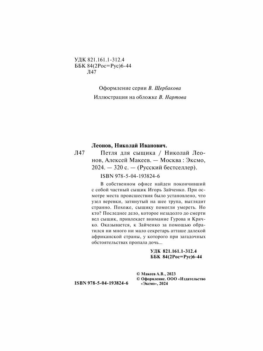 Книга: Петля для сыщика (Леонов Николай Иванович, Макеев Алексей Викторович); Эксмо-Пресс, 2024