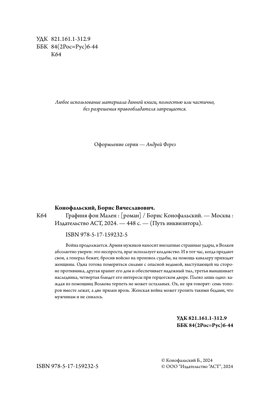 Книга: Графиня фон Мален (Конофальский Борис Вячеславович); ИЗДАТЕЛЬСТВО "АСТ", 2024