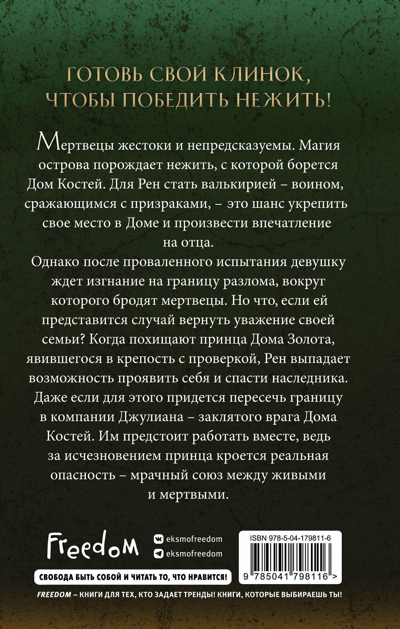 Мертвецы жестоки и непредсказуемы. Магия острова порождает нежить, с которой борется Дом Костей. Рен, внучка главы правящего дома и дочь отважного рыцаря, мечтает освободить землю от нежити.