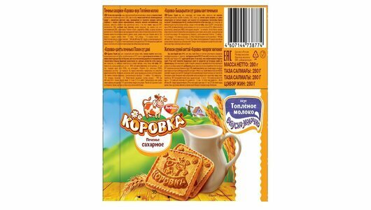 Румяное рассыпчатое печенье Коровка с насыщенным сливочным ароматом и вкусом топленого молока. В меру сладкое, хрустящее, тающее во рту сахарное печенье станет прекрасным дополнением к любому чаепитию или кофераспиванию. Орнамент с очаровательной коровкой понравится самым маленьким любителям сладостей, ведь печенье также замечательно сочетается с молоком!