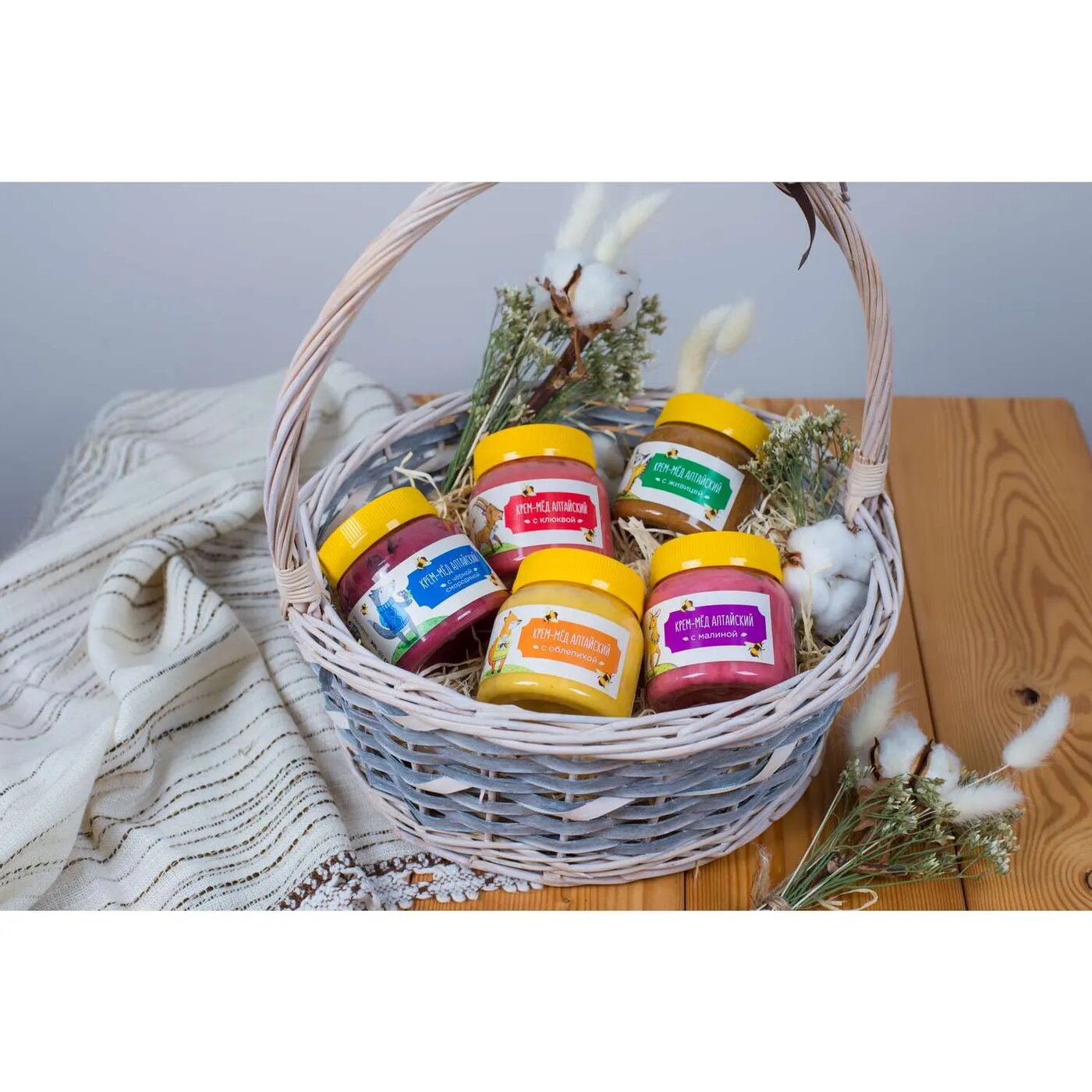 Нежнейший алтайский крем-мёд с добавлением ягод и сока клюквы. Клюква содержит огромное количество минеральных веществ, антиоксидантов и витаминов.Состав: натуральный алтайский мед, клюква, сок клюквенный, карминПищевая ценность в 100г продукта: углеводы не менее 75 г. Энергетическая ценность: 284 ккал (1189 кДж). Массовая доля влаги не более 20,1%.Не содержит ГМО.Что такое крем-мёд?У этого продукта множество названий: взбитый мед, крем-мед, мед-суфле, медовый мусс. Но под всем этим многообразием наименований скрывается одно: нежный натуральный мед, взбитый по особой технологии. В процессе взбивания мед насыщается кислородом, приобретает слегка белесый оттенок и кремообразную текстуру. Одно из преимуществ такого меда — отсутствие кристаллов сахара в продукте.Фасовка меда производится путем холодного розлива, при 13°C, что позволяет мёду сохранять все его полезные свойства.С добавлением ягод крем-мед становится еще вкуснее и полезнее: продукт не просто пахнет ягодами и имеет присущий им аромат. Внутри медового крема вы найдете цельные высушенные клюковки.Крем-мёд «Алтайвита» не кристаллизуется, обладает аппетитным цветом и вкусом, полезен как детям, так и взрослым и является достойной повседневной заменой привычным вредным сладостям.Вес нетто: 300 г. Упаковка: пластик.Хранить при температуре от 0 до 20°C и относительной влажности не более 75%.