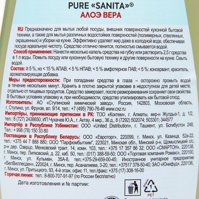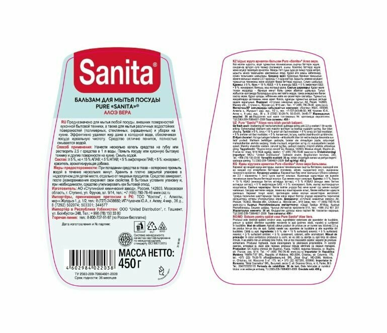 Сервис сравнения цен СкидкаГИД предлагает сравнить цены на товар «Бальзам для мытья посуды Sanita Pure Алоэ Вера 450 г 22941»