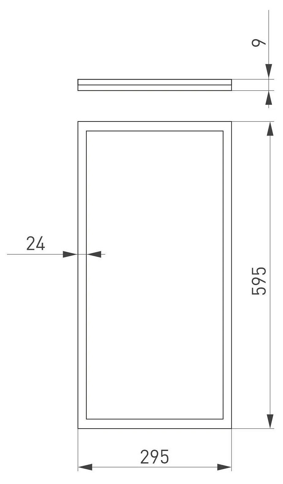 Светодиодная панель с торцевой засветкой (edge-lit). Мощность 28 Вт, св. поток 3000 лм, 100 лм/Вт, теплый 3000 K, CRI>90, угол 120°, напряжение питания 230 В. Белый квадратный корпус из алюминия, экран PS, LGP PMMA, степень защиты IP40. Размер: длина 595 мм, ширина 295 мм, высота 9 мм. Монтаж встраиваемый, установочное отверстие длина 575 мм, ширина 275 мм. Драйвер 27-42 В, 700 мА, пульсация