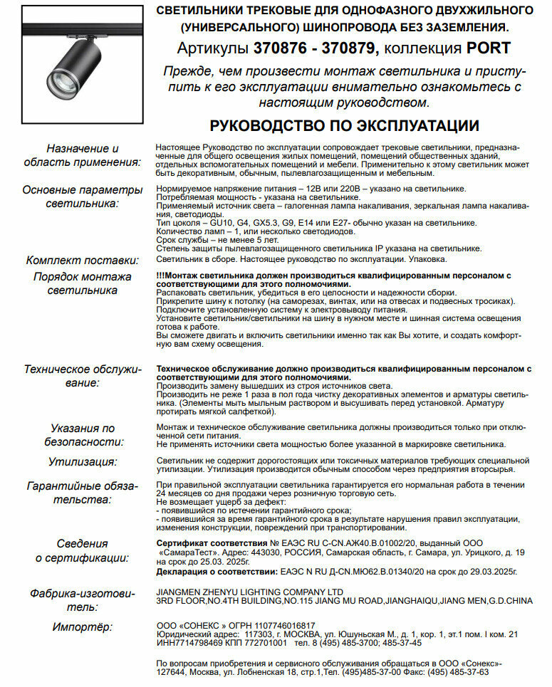 Однофазный светильник для шинопровода с лампочкой Novotech 370879+Lamps