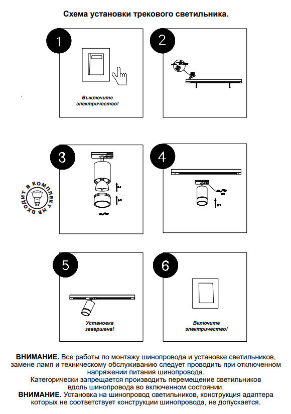 Однофазный светильник для шинопровода с лампочкой Novotech 370779+Lamps
