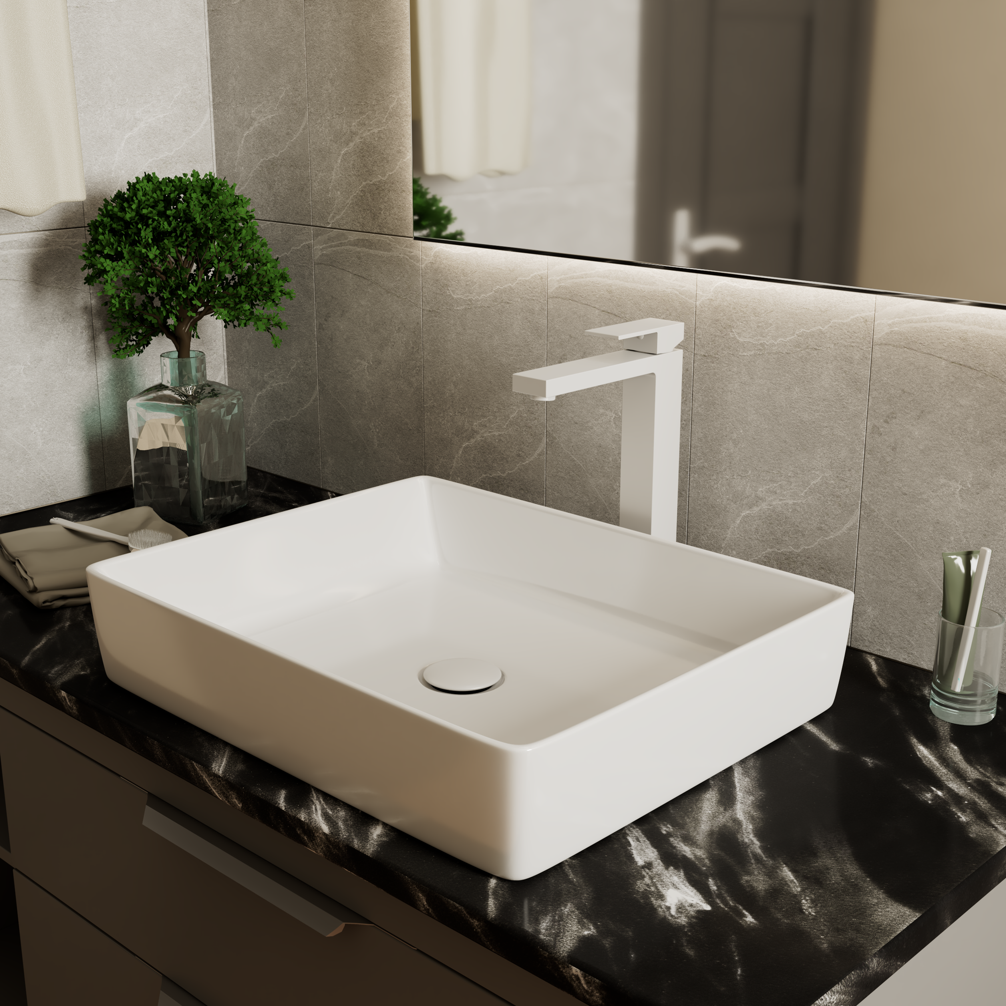 Смеситель для раковины D&K Bayern.Liszt - современный и актуальный дизайн, вобравший в себя ключевые тренды и отвечающий реальным запросам сегодняшнего дня с выбором популярного цветового решения белый матовый поможет создать идеальную ванную комнату каждому. Смеситель изготовлен из латуни высокого качества, безопасен для людей и домашних животных из-за пониженного содержания свинца. Протестирован на 500 000 циклов включения, что составляет более 30 лет повседневного использования, семьи из четырёх человек. Аэратор Neoperl экономит воду за счет смешивания с воздухом, струя становится ровнее и мягче, снижая уровень шума. Гибкая подводка 40 см идёт в комплекте для быстрой установки.
