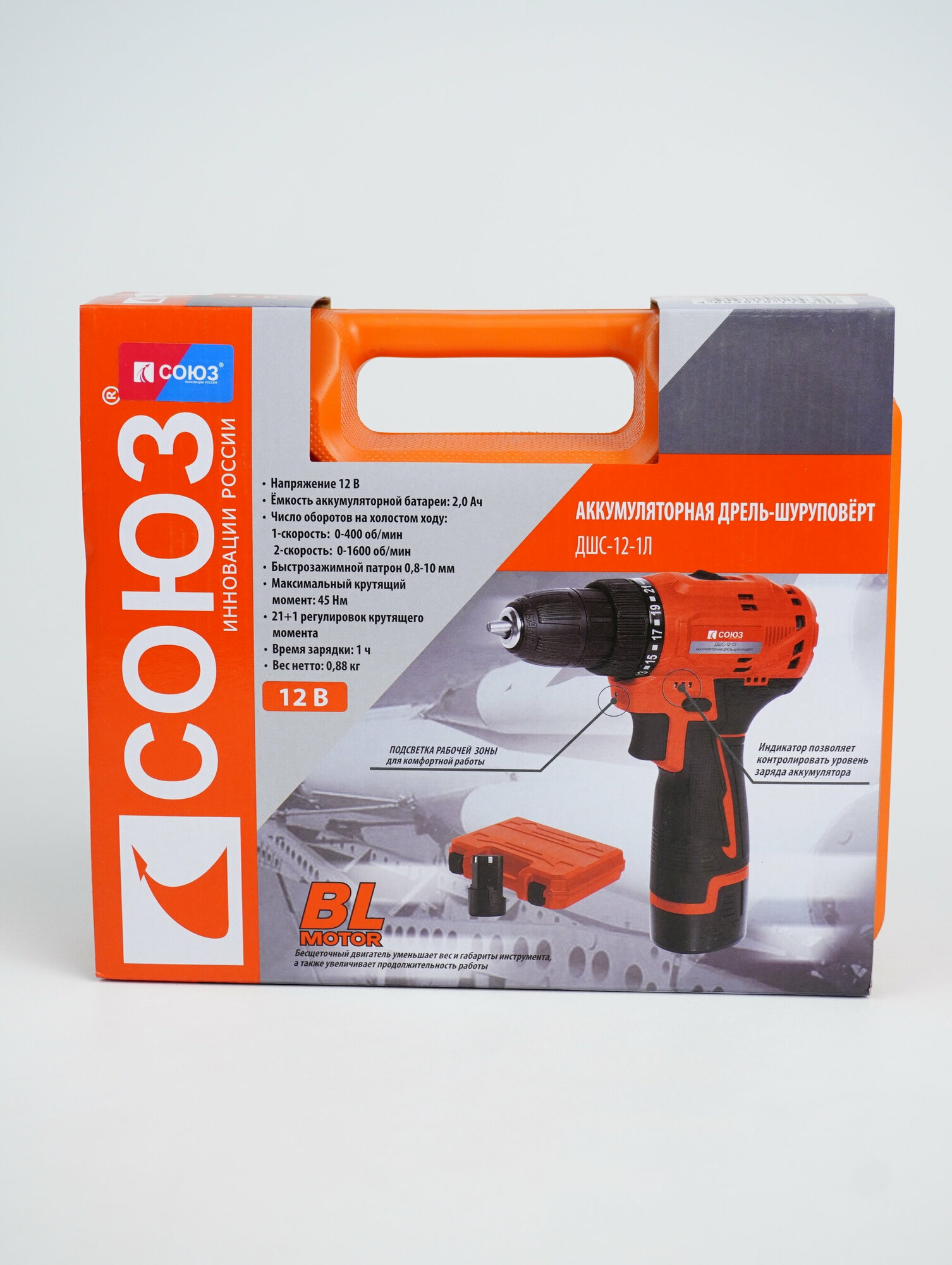 Дрель аккумуляторная бесщеточная Союз ДШС-12-1Л 12 В 2 акк. 2.0 Ач кейс