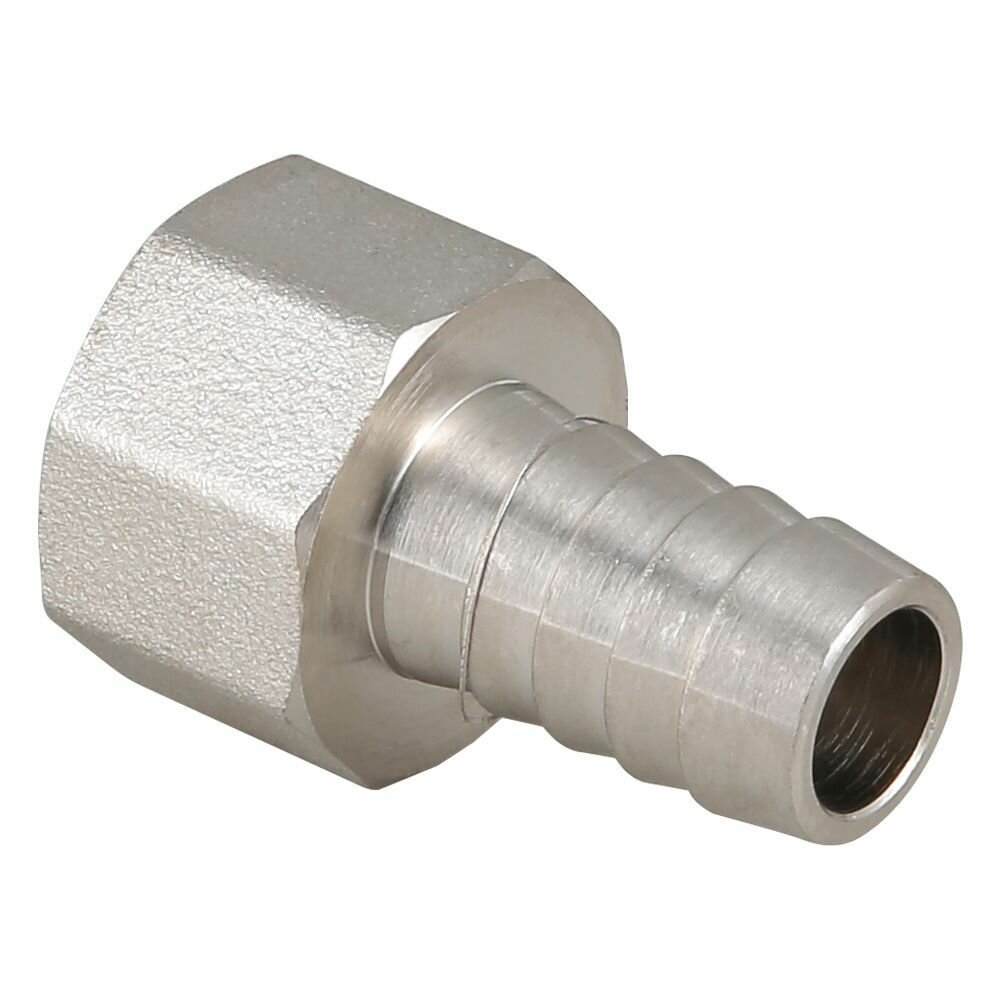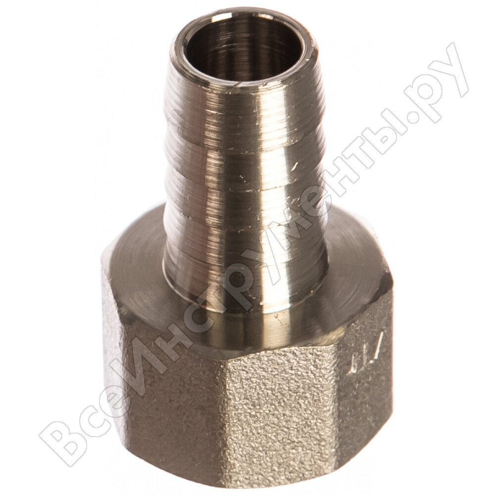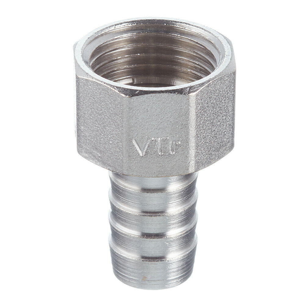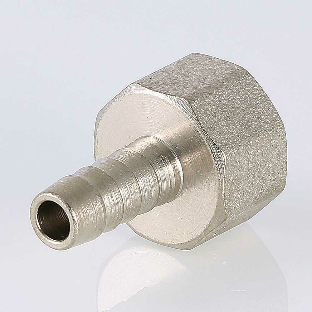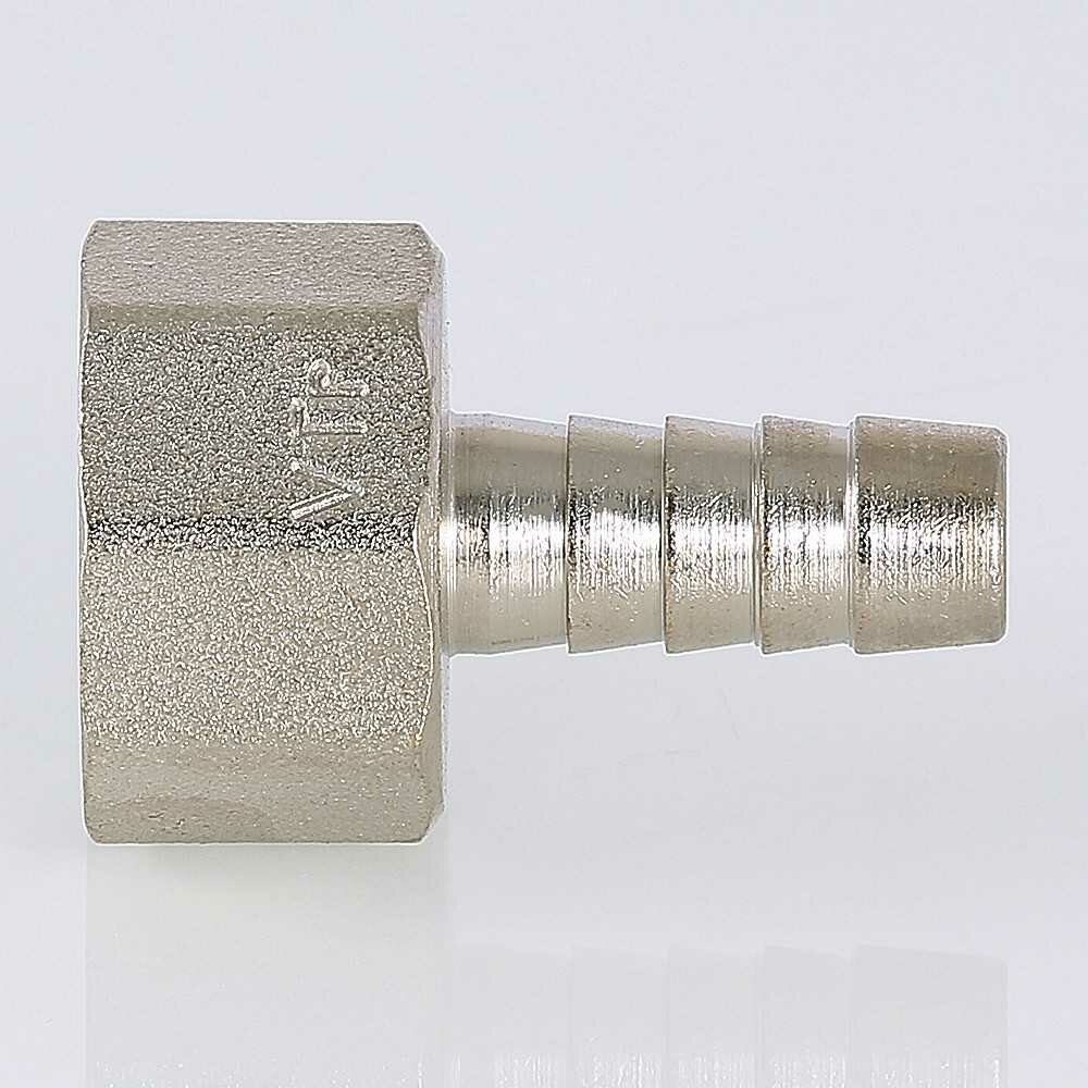 Штуцер для присоединения шланга VALTEC внутр. Штуцер для шланга с внутренней резьбой изготовлен из высококачественной сантехнической латуни марки методом горячего прессования с нанесением защитного гальванического покрытия. Резьба фитинга – дюймовая, диаметром 1/2". Соединитель позволяет подключить шланг к стальной трубе с нарезанной резьбой или патрубку водопроводной арматуры с наружной резьбой напрямую, без использования какого-либо переходного элемента.Преимущества Надежность Длительный срок службы