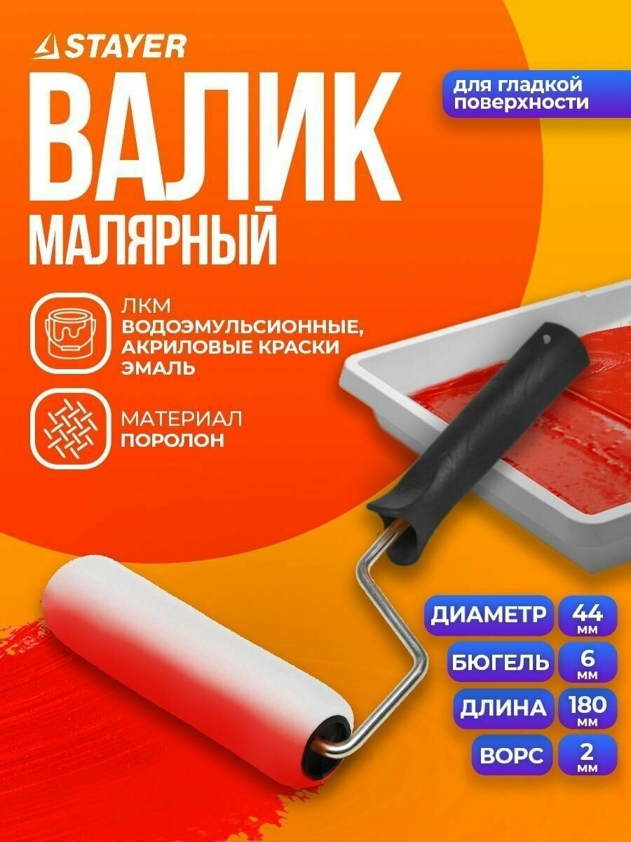 Валик малярный Stayer MASTER 0360-18_z01 (в сборе бюгель 6 мм 44x180 мм)