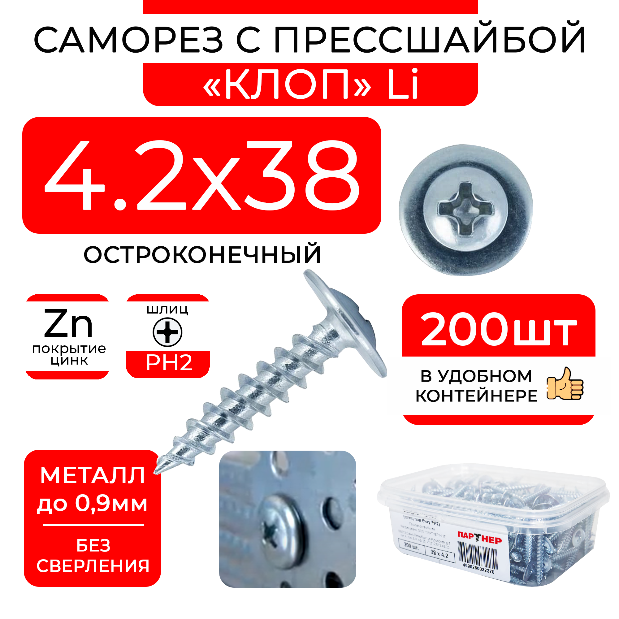 Саморезы Партнер клопы 4.2х38 200 шт. контейнер ФАС 2965 200 41