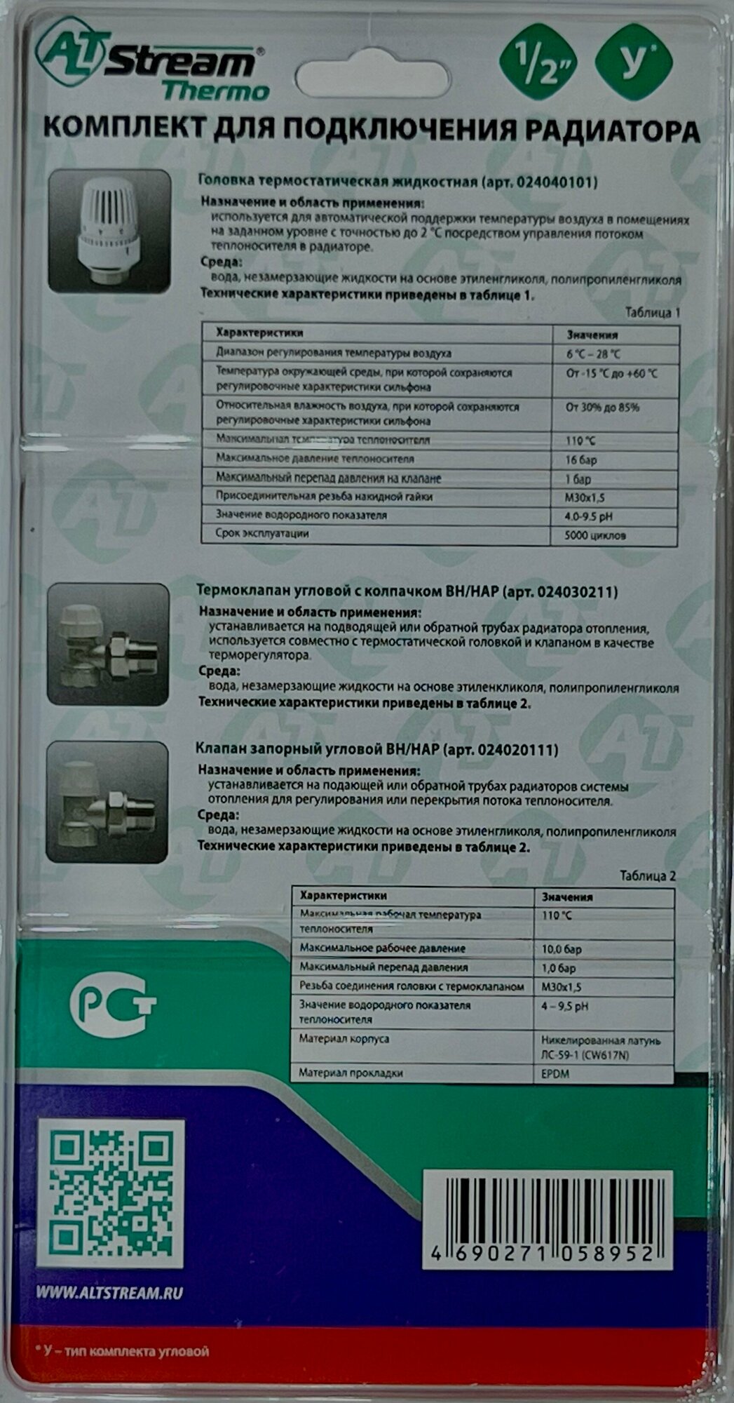 Сервис сравнения цен СкидкаГИД предлагает сравнить цены на товар «ALT-T Комплект ком вн/нар 1/2кл.запорный угл. вн/нар 1/2терм. головка Altstream №2 1/2 угл. (Терм.угл.с колпач»