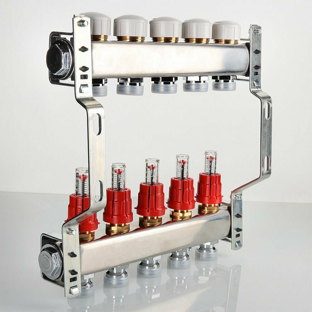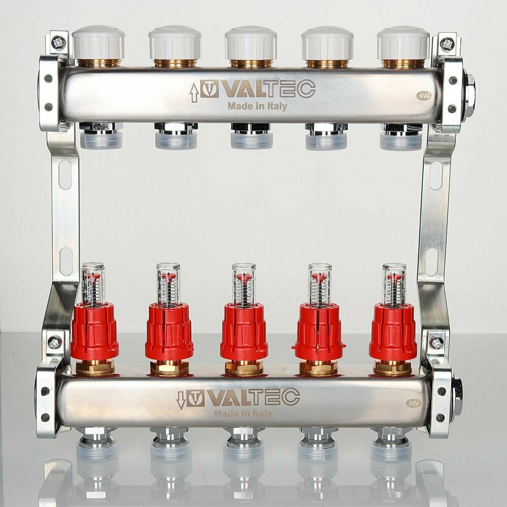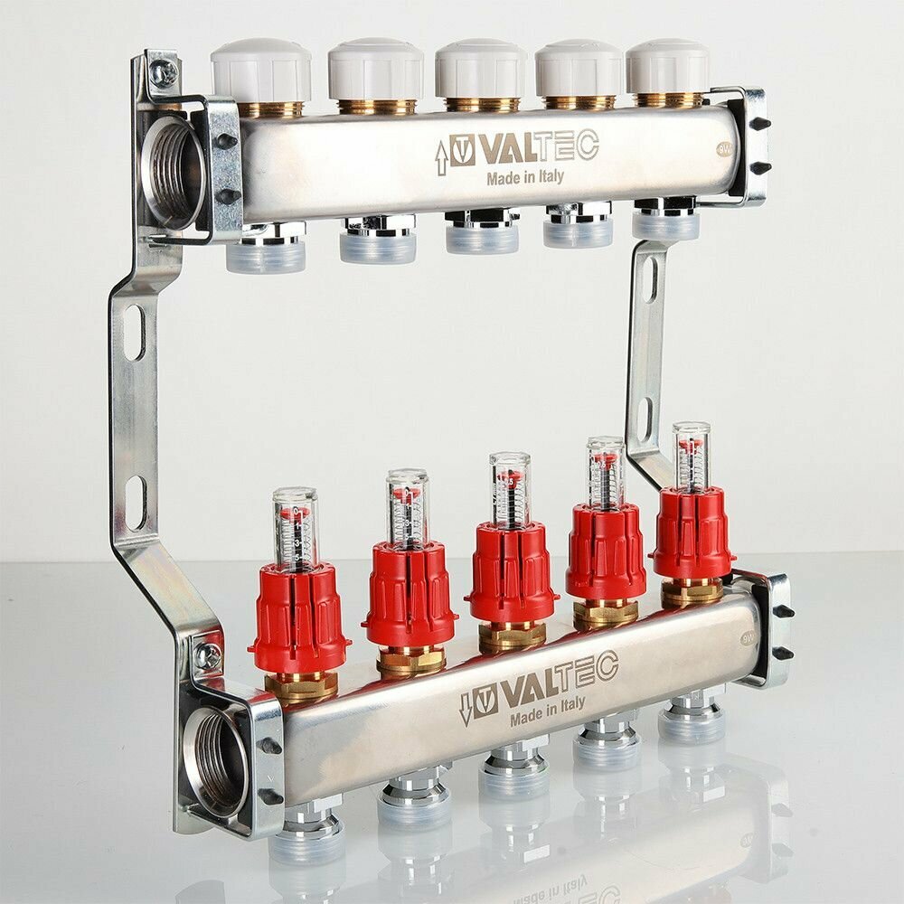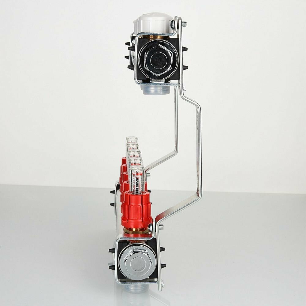 Коллекторный блок из нержавеющей стали Valtec VTc.584 служит для распределения потока транспортируемой среды по контурам системы напольного отопления. Коллекторный блок из нержавеющей стали с регулирующими клапанами и расходомерами VTc.584 рассчитан на применение в системах водяного отопления с максимальной рабочей температурой 70 °C и давлением до 6 бар включительно. Объединяет в себе подающий и обратный коллекторы, ручные настроечные клапаны с расходомерами (ротаметрами), регулирующие клапаны (с возможностью установки электротермического сервопривода), пробки коллекторов и крепежные кронштейны из оцинкованной стали. В состав блока не входят элементы сервисной группы.Преимущества Число выходов - 3 Присоединение трубных петель осуществляется с помощью фитингов стандарта «евроконус» Выполнен из из нержавеющей стали AISI 304 Может использоваться в системах, где в качестве теплоносителя используется вода либо незамерзающие гликолевые смеси Соответствует всем требованиям безопасности Средний полный срок службы - 25 лет