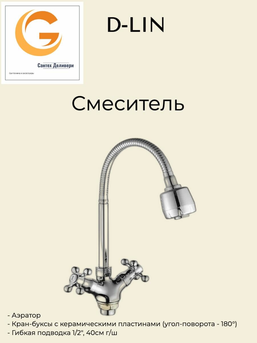 Сервис сравнения цен СкидкаГИД предлагает сравнить цены на товар «Смеситель для кухни D-Lin D153819-T гибкий излив»