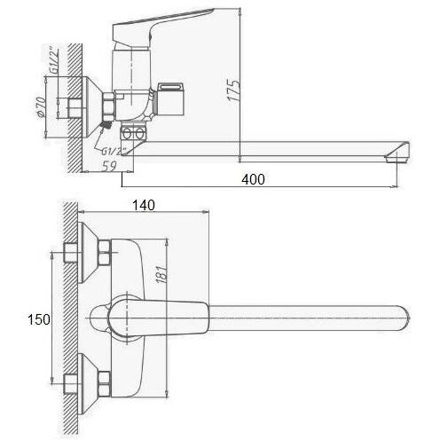 Смеситель для ванны D-Lin ф40мм излив 30 см D147460