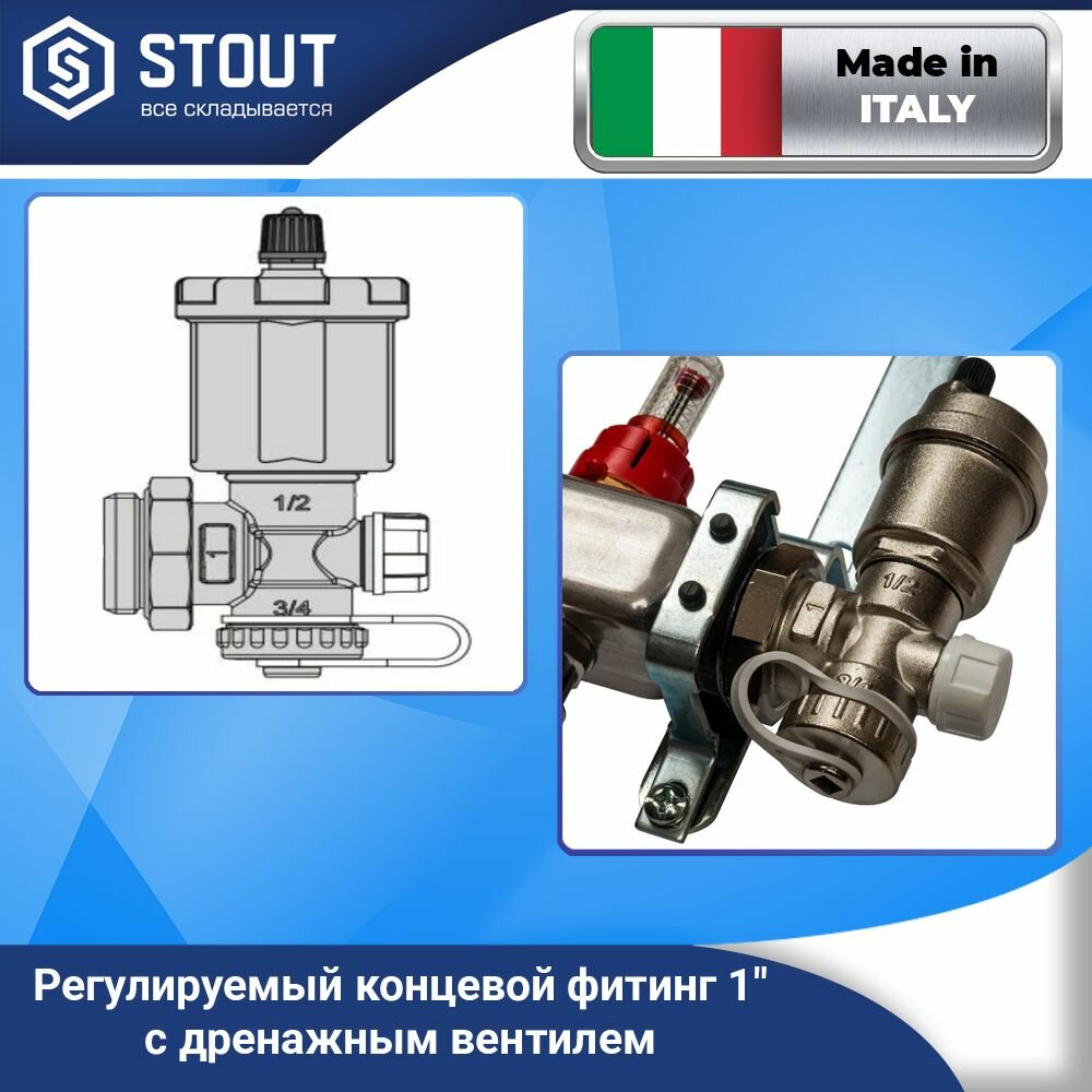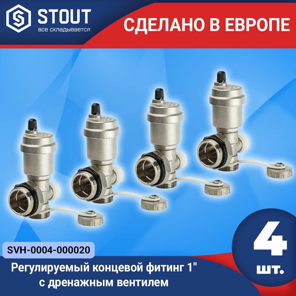 Регулируемый концевой фитинг с дренажным вентилем Stout SMS-1000-010001 9 (автоматический воздухоотводчик 1") SMS-1000010001 RG008Q1TNRFJ82