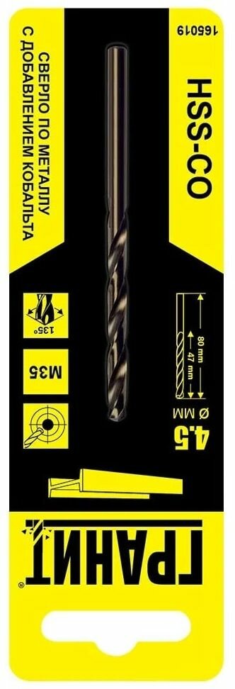 Сверло по металлу Гранит HSS-Co 4.5х80/47 165019