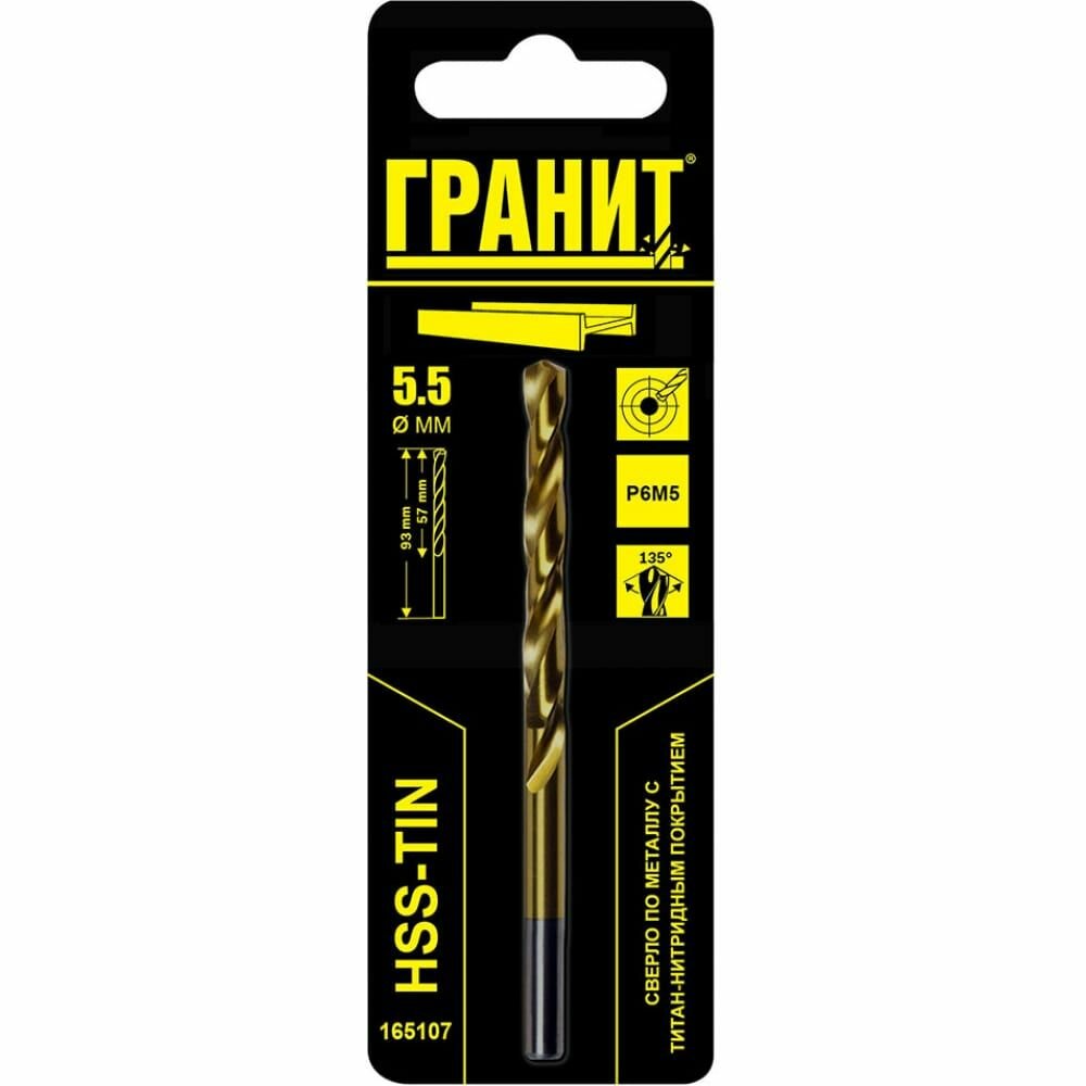 Сверло по металлу Гранит 165107 HSS-Tin 5.5х93/57