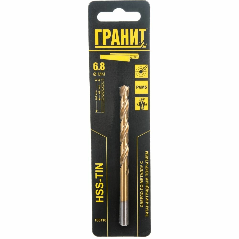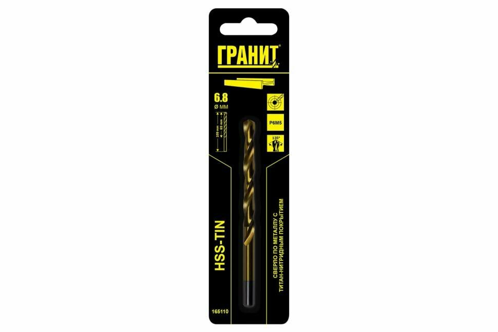 Сверло по металлу Гранит 165110 HSS-Tin 6.8х109/69
