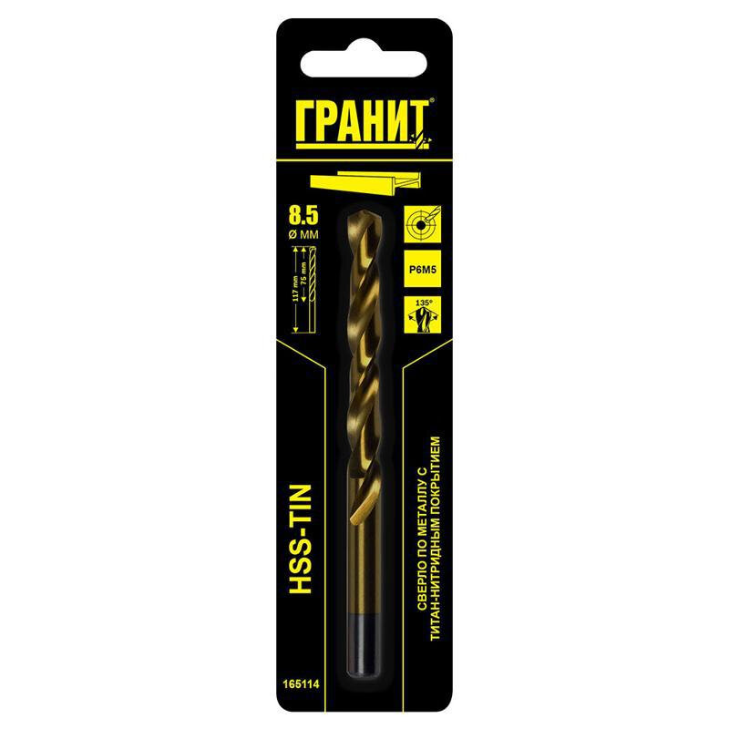 Сверло по металлу Гранит 165115 HSS-Tin 9.0х125/81